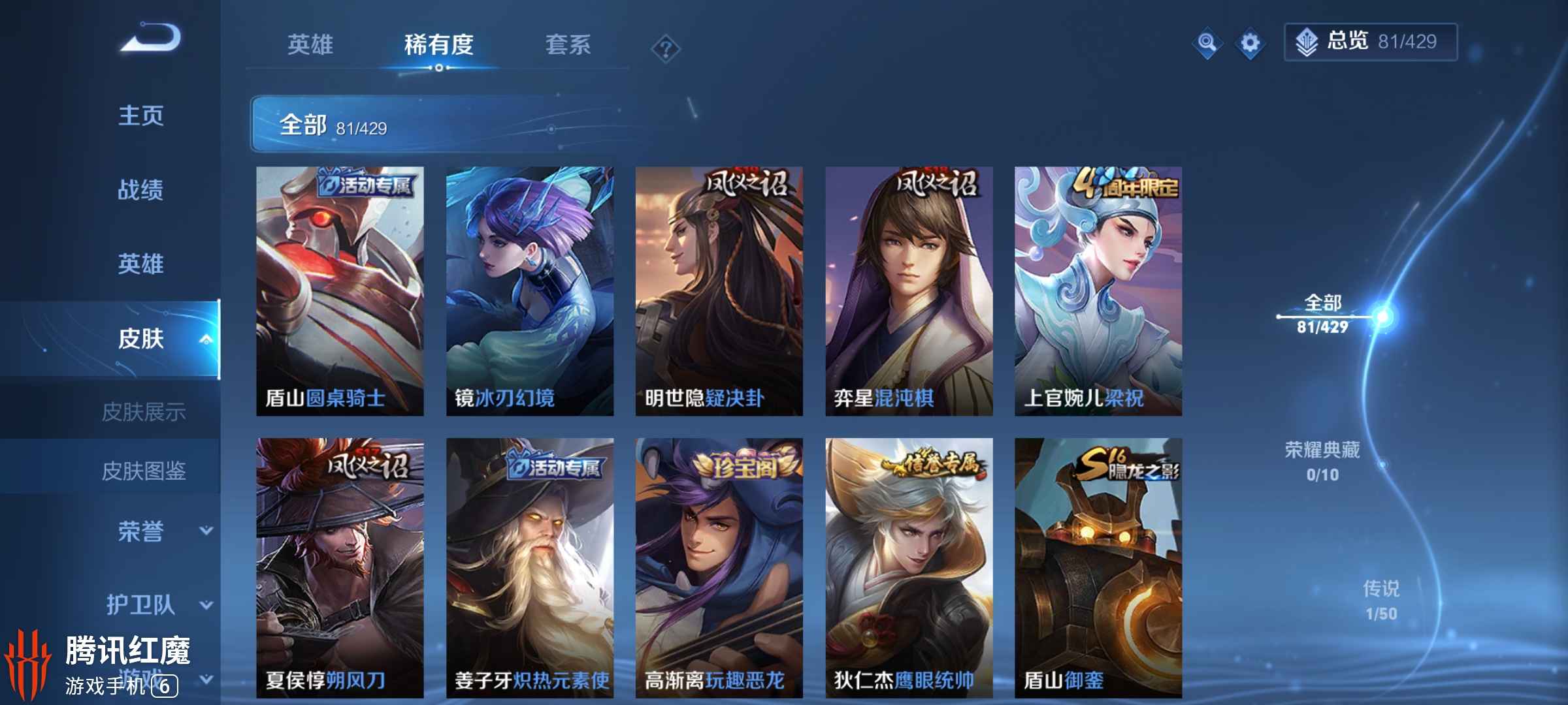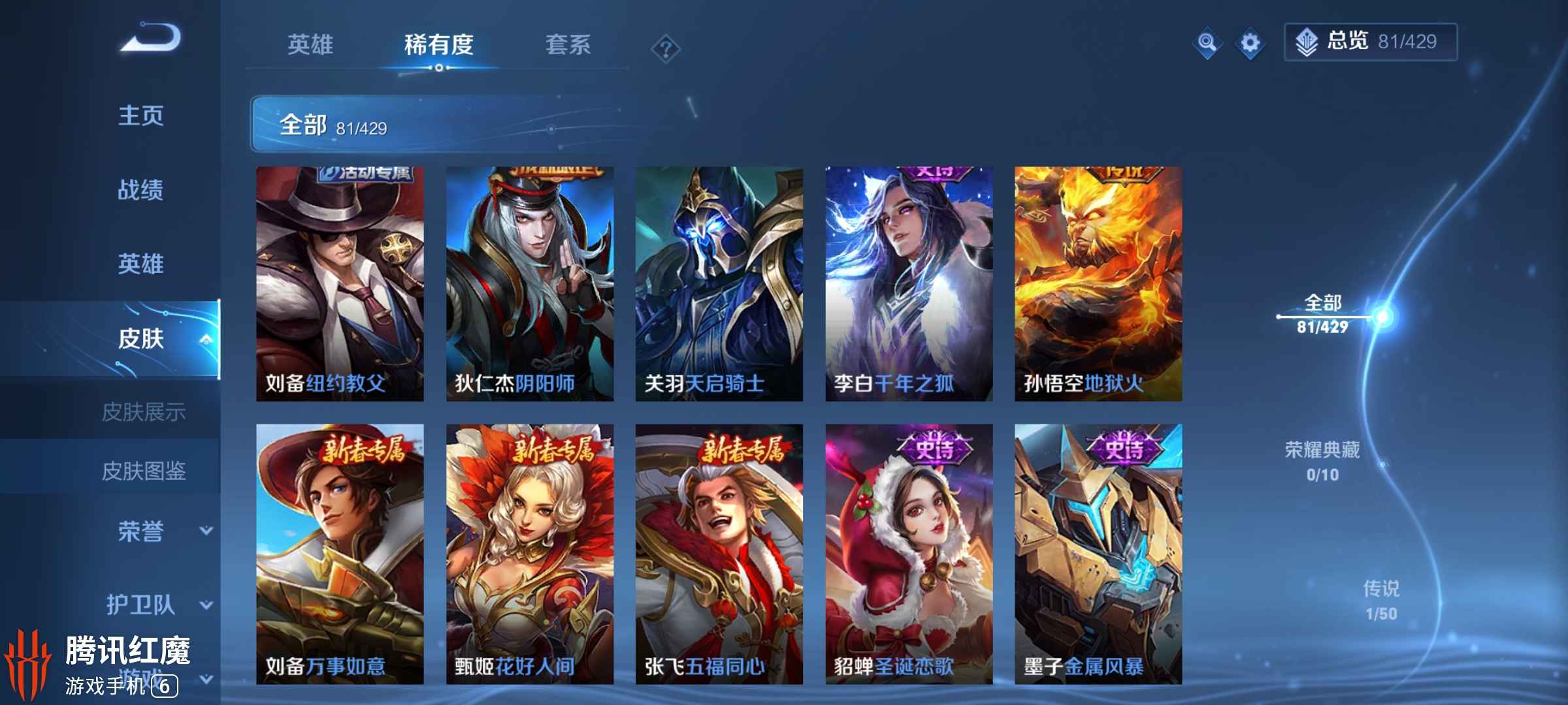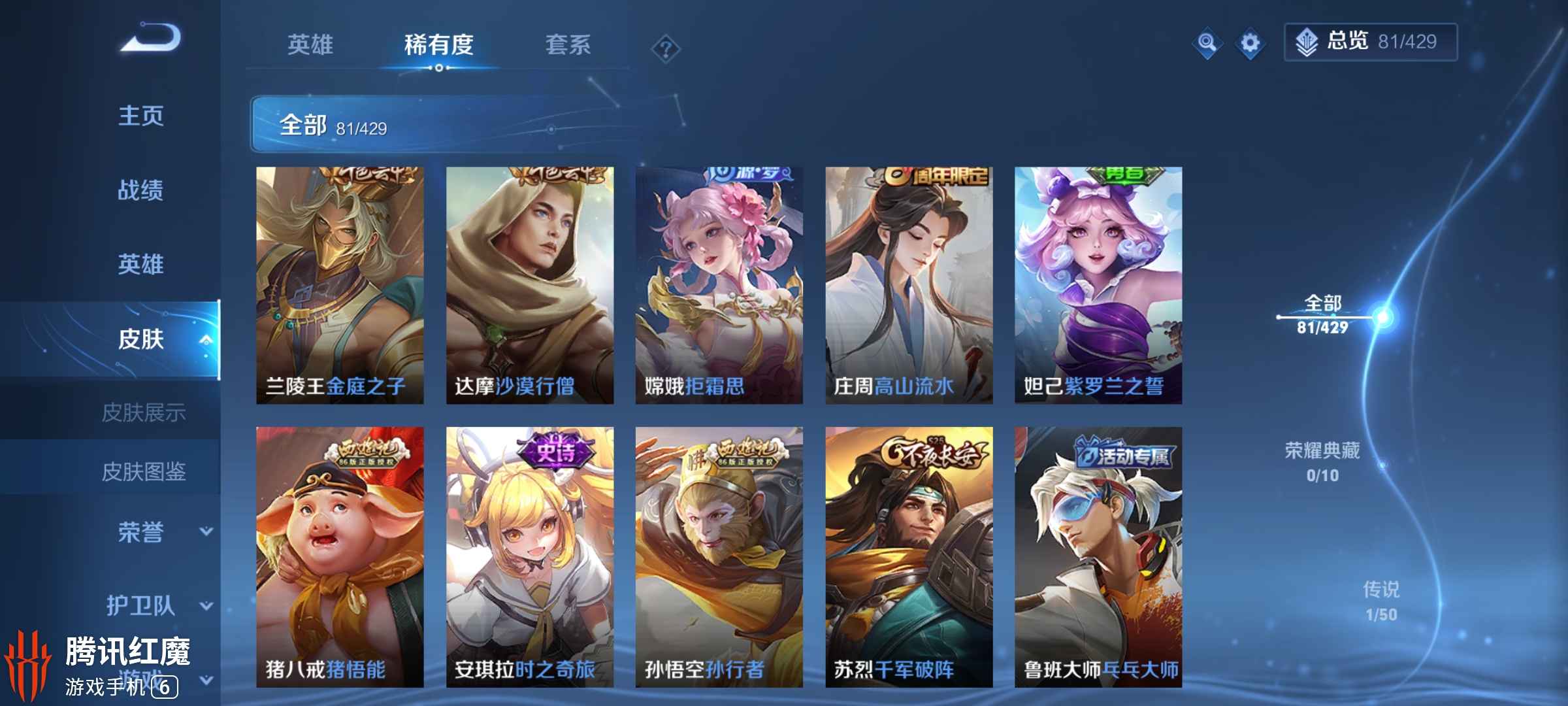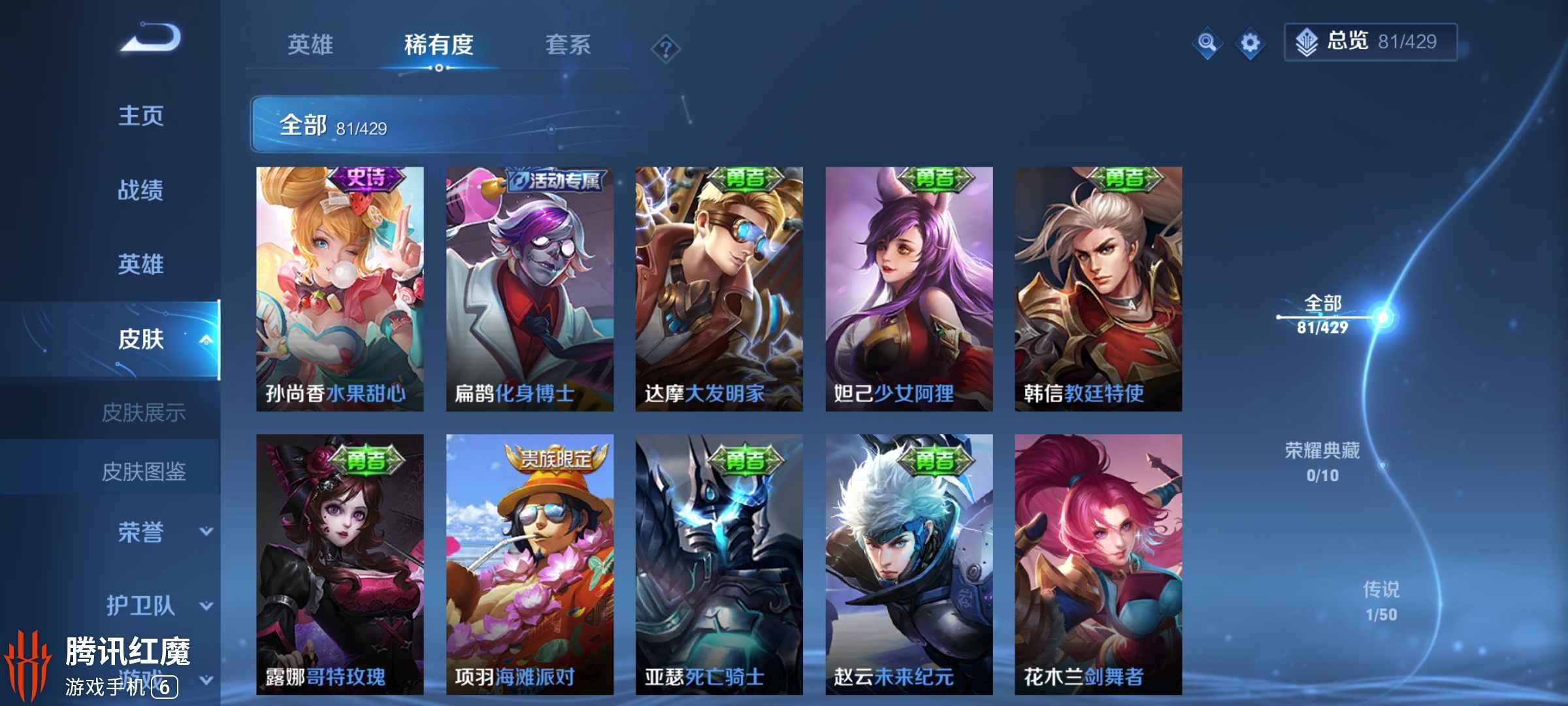 全英雄差武则天 198款皮肤 60款限定(不包括活动皮肤)