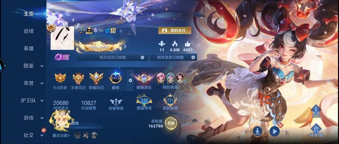 荣耀V10女号9国服瑶西施少司缘/马年限定安琪拉典藏李信无双/5省金牌瑶朵少司缘满金色灵宝满按键小兵