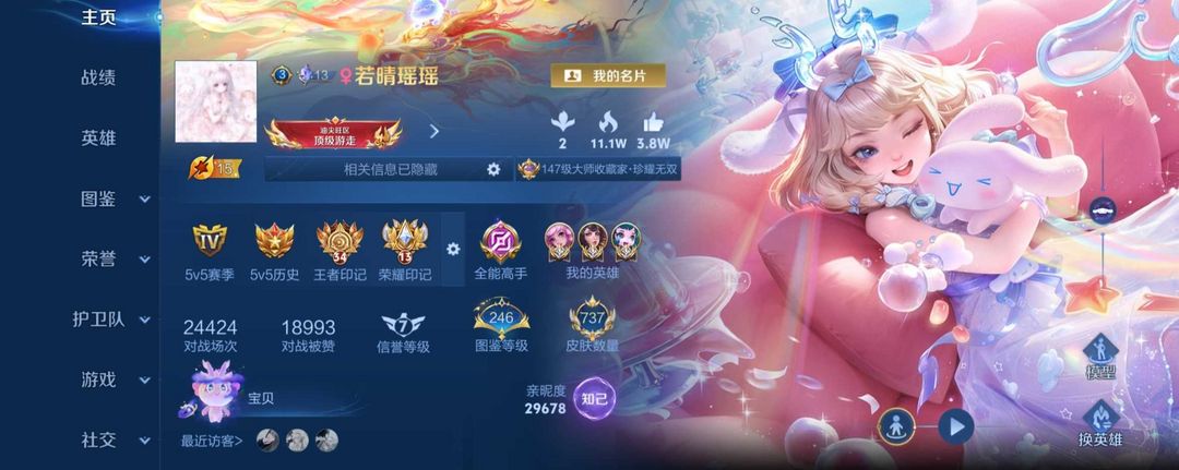 女号不禁言/三大国服瑶大桥蔡文姬可排位/猴子新无双无相/在榜省金牌瑶/满13无双满珍品传说粉小兵皮肤