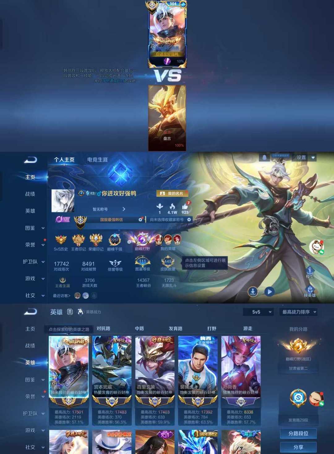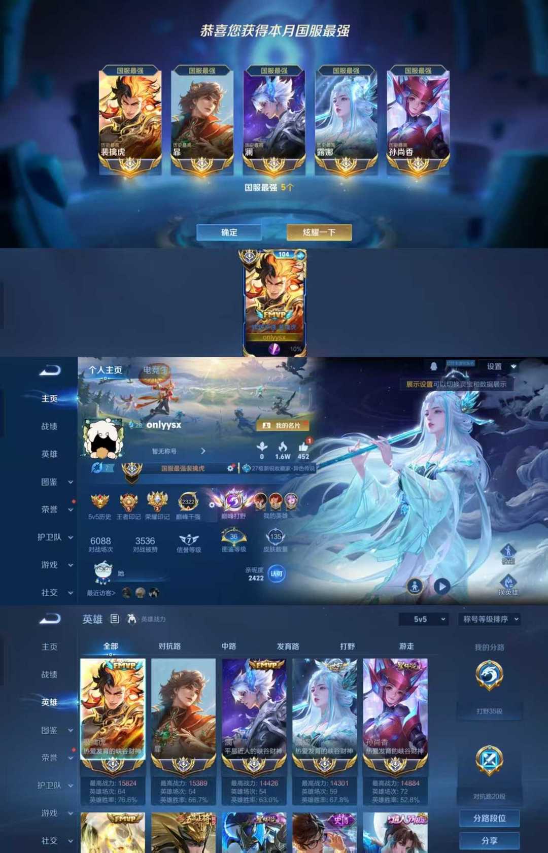 二月国服镜澜曜巅峰前十/国服马超木兰/国服韩信李白露娜/大量十月国服百段分路主播职业logo