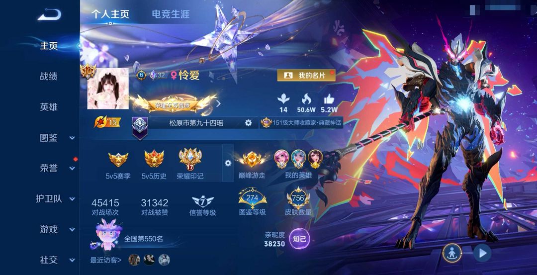 荣耀V10不禁言❤️国服瑶朵莉亚❤️756皮满水晶满按键满小兵14星元❤️吕布-千魔归渊