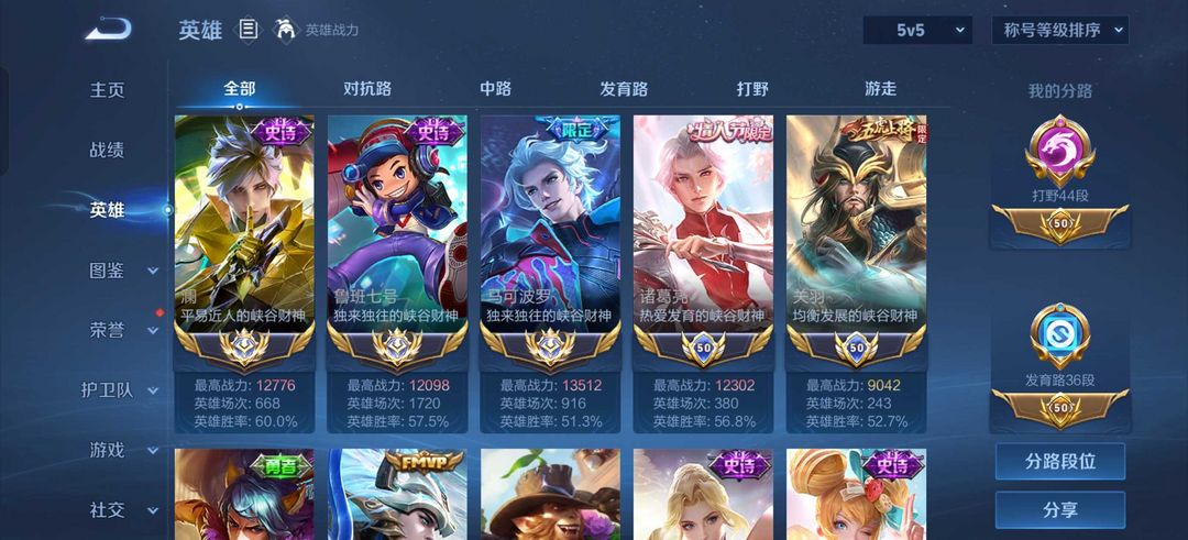 二月在榜小国马超❤️省标马克深海之息带妹必备历史国服鲁班澜马克❤️贵族v10