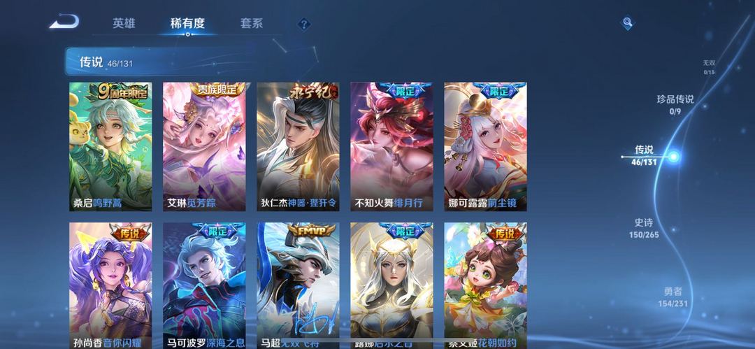 装备描述:英雄:孙悟空(孙悟空 零号·赤焰,孙悟空 地狱火,孙悟空 西部大镖客,孙悟空 孙行者);太乙真人(太乙真人 圆桌骑士,太乙真人 华丽摇滚,太乙真人 谧流熔炉,太乙真人 饕餮,太乙真人 劲辣红锅);王昭君(王昭君 凤凰于飞,王昭君 精灵公主,王昭君 偶像歌手,王昭君 幻想奇妙夜,王昭君 乞巧织情,王昭君 午后时光);海月(海月 幻泉雾影);武则天(武则天 倪克斯神谕,武则天 海洋之心,武则天 东方不败);赵怀真(赵怀真 太极少年);夏侯惇(夏侯惇 匿光决锋者,夏侯惇 乘风破浪,夏侯惇 战争骑士,夏侯惇 朔风刀);莱西奥(莱西奥 踏浪烽翎,莱西奥 西部游侠);项羽(项羽 帝国元帅,项羽 苍穹之光,项羽 海滩派对,项羽 科学大爆炸);小乔(小乔 纯白花嫁,小乔 音你心动,小乔 万圣前夜,小乔 缤纷独角兽,小乔 青蛇,小乔 丁香结);雅典娜(雅典娜 黎明之约,雅典娜 冰冠公主,雅典娜 战争女神,雅典娜 神奇女侠,雅典娜 单词大作战);孙权(孙权 径山谋武);亚瑟(亚瑟 心灵战警,亚瑟 死亡骑士,亚瑟 荣光之誓,亚瑟 潮玩骑士王);杨戬(杨戬 埃及法老,杨戬 次元傲视,杨戬 天秀·启明);苍(苍