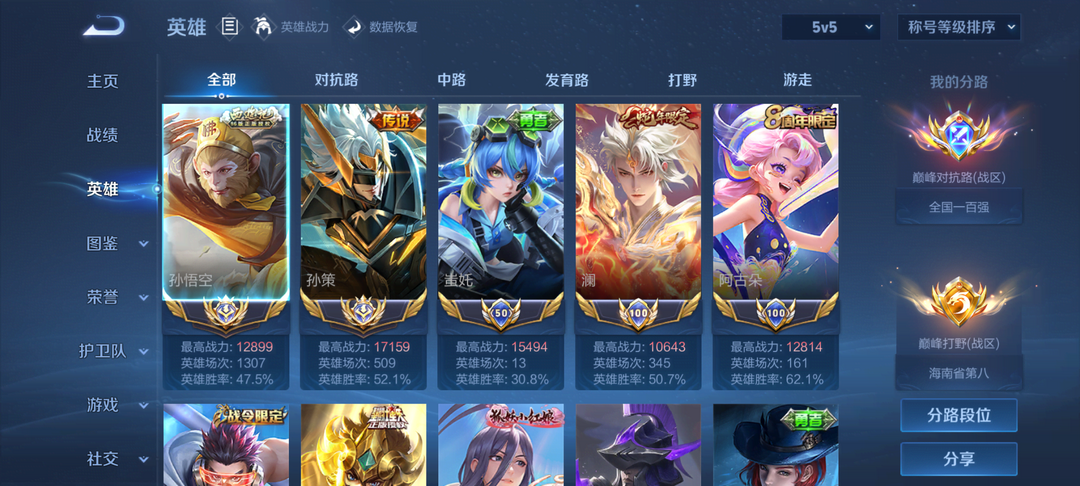 游戏区服:王者荣耀-微信安卓-微信账号
