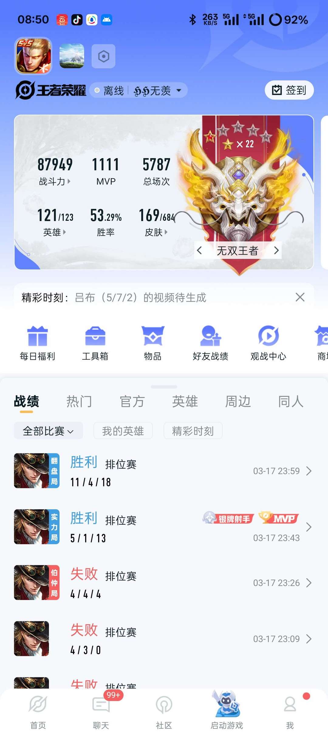 游戏区服:王者荣耀-QQ安卓-QQ账号