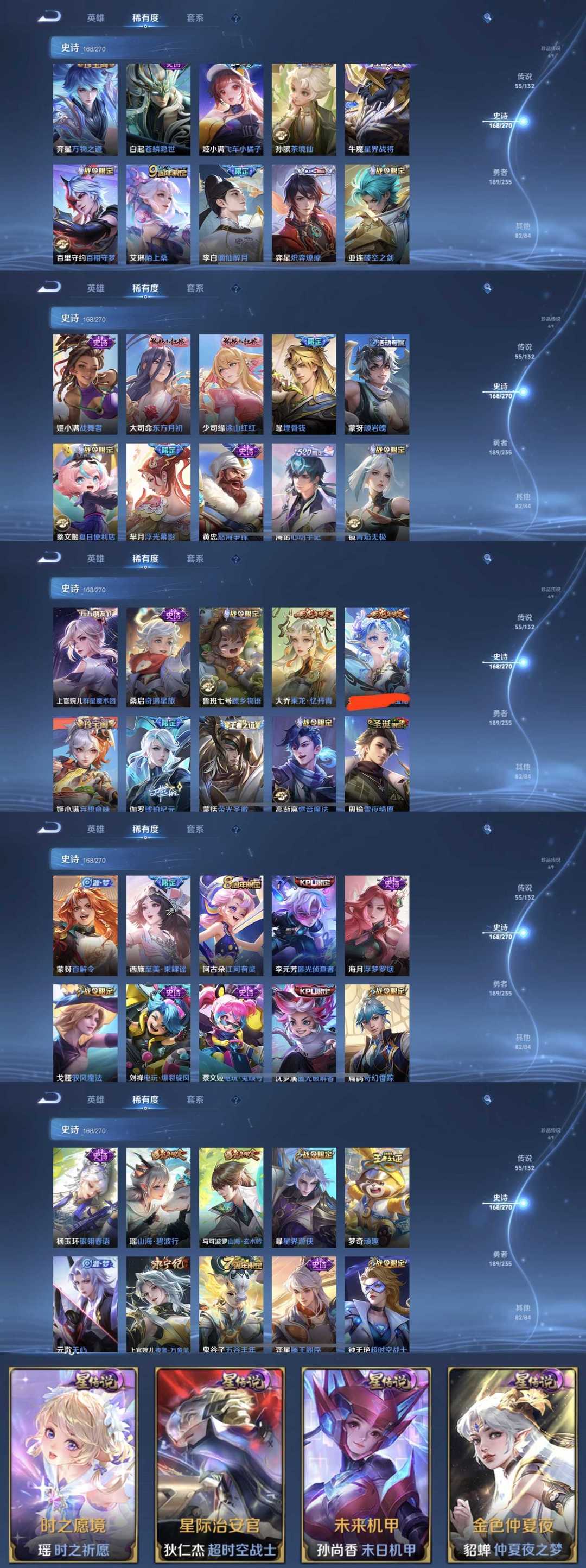 限制: 租号2次及以上 | 撤单率<49%才可租用此帐号装备描述:时间到了还登录白玩或者顶号全部改密拉黑处理永不解除,顶号机器会秒禁玩改密,顶号不仅拉黑还没得玩,赚三两块不容易,请理解谢谢。 ❤❤❤❤❤❤❤❤❤❤❤❤❤❤❤❤❤❤❤ 请勿开挂,挂机,送头,骂人,撤单后游戏等如有违规永久拉黑永不解除。 重置二级密码不要费劲了,号主每天都会上号查看,多行不义必自毙,人在做天在看,多做好事多自律,少做缺德事。 该号英雄128个皮肤509个,典藏3个,无双6个,珍品传说6个,星传说4个,传说55个,史诗168个,祝您游戏愉快~