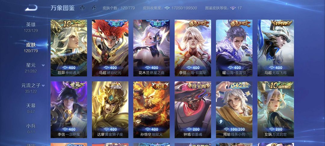 李信全皮马超无双飞将琥珀纪元花木兰燃星之曲猴子幽冥火等九传说皮