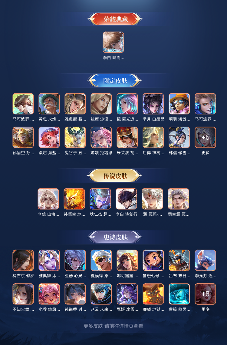 李白荣耀典藏 基本上每个英雄都有皮肤 不要骂人 不要私自用东西 皮肤体验卡可以使用