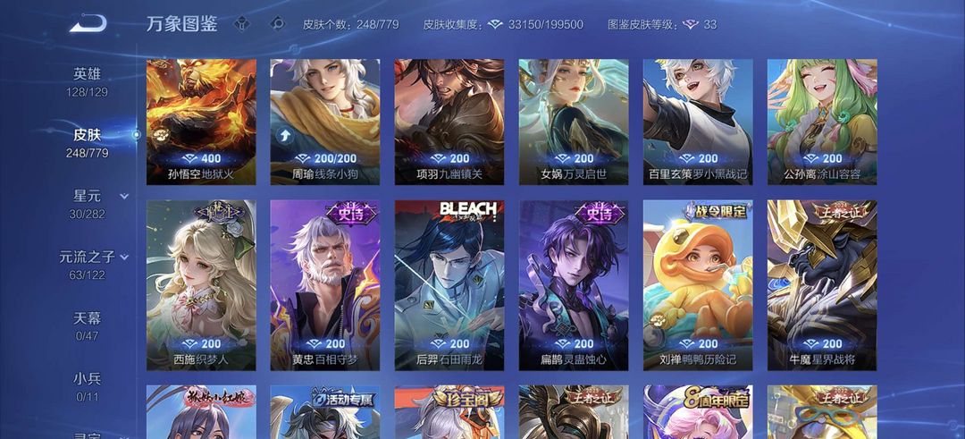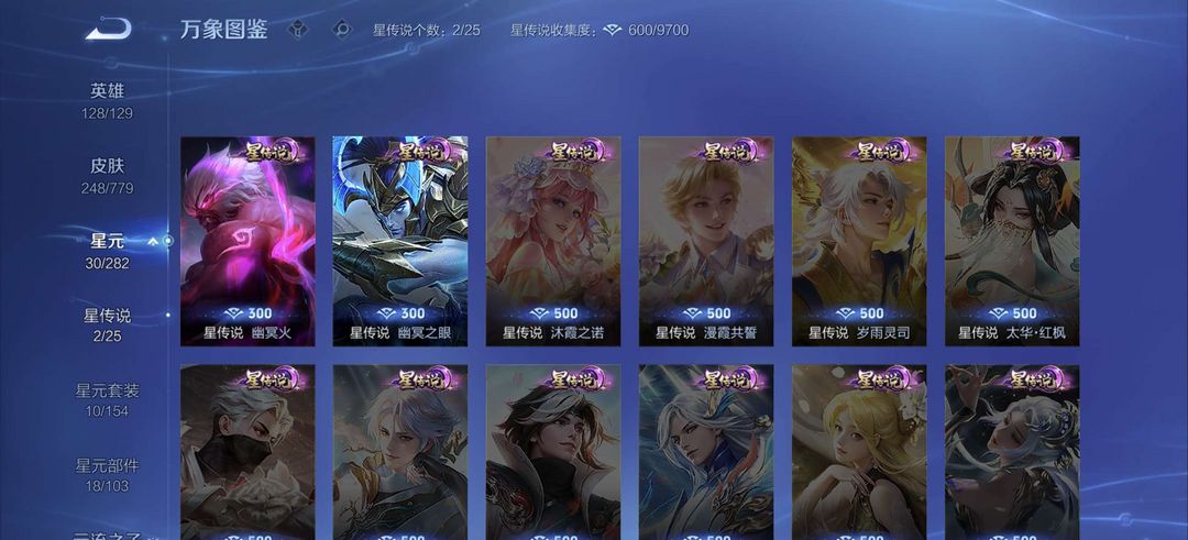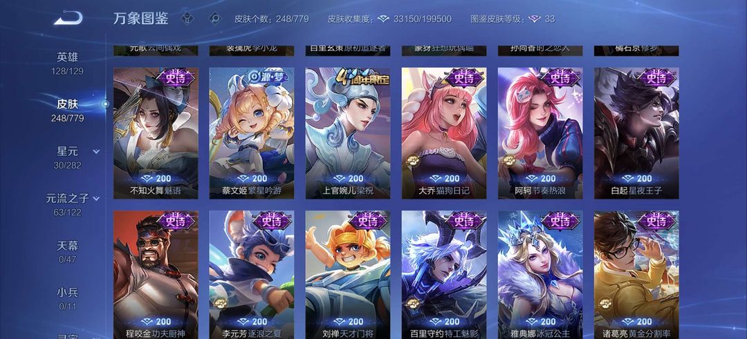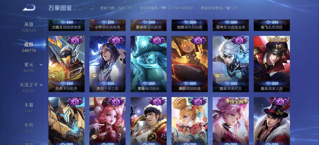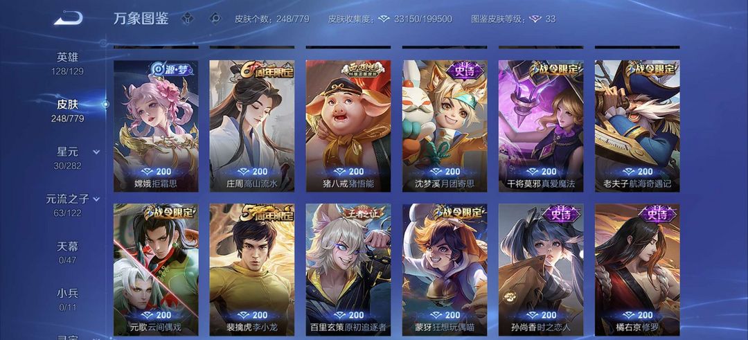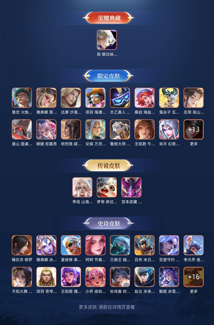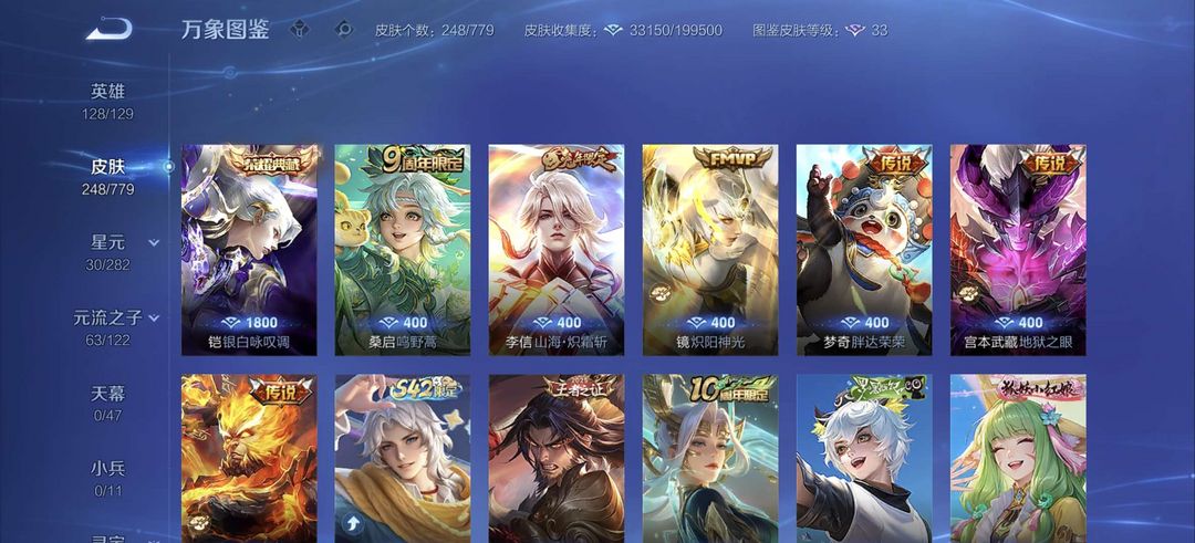 一典藏,250皮肤凯典藏,李信年限,镜FMVP,宫本星传说等稀有皮肤,猴子星传说超多史诗皮肤等你