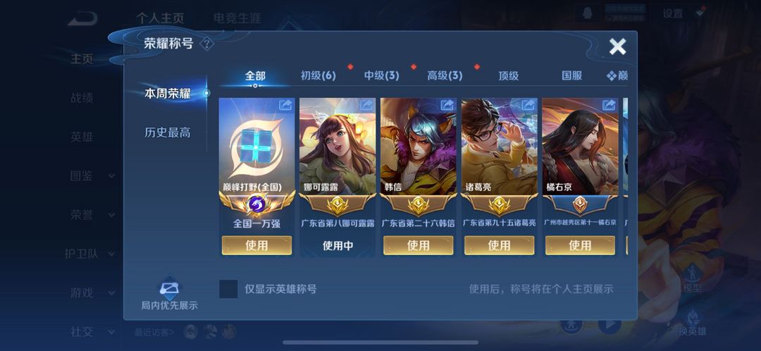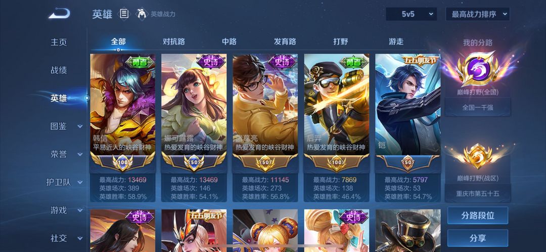在榜巅峰万强打野+广东第八娜可第26韩信95诸葛现三个11600战力,禁巅峰禁巅峰