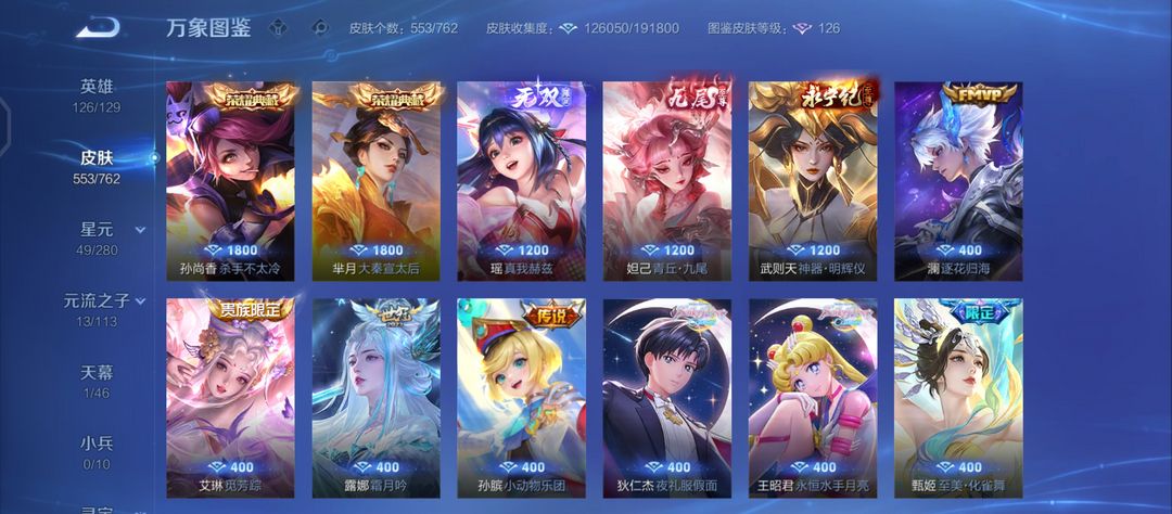 【V10 553皮】V10❤️14典藏❤️5世冠❤️10个FMVP❤️13个KPL❤️历史国服鬼谷子