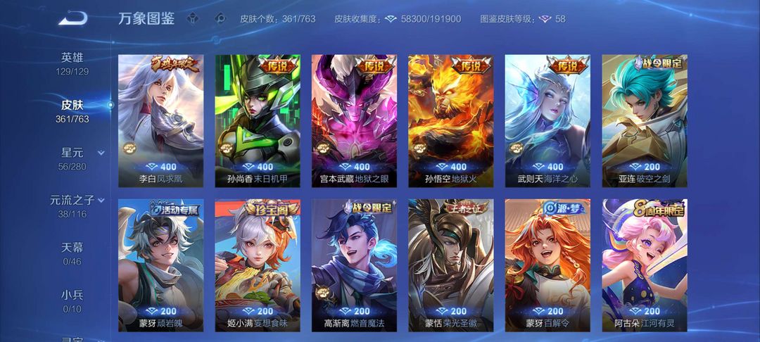 v9 5典藏鸣剑曳影 赤影疾风 天鹅之梦 大秦宣太后 全息碎影 至尊宝 300+皮肤