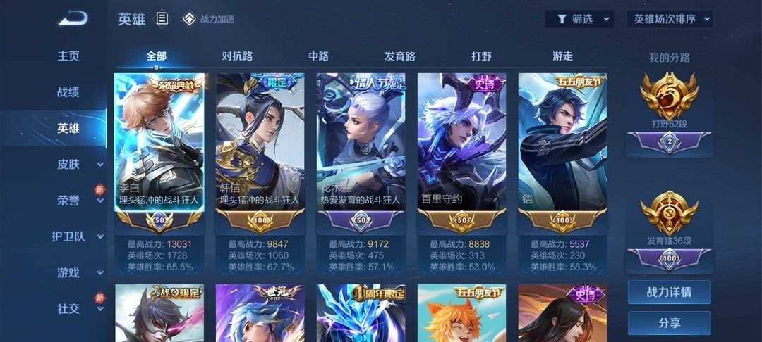 【国服李白】金标韩信.花木兰守约.铠.赵云.关羽.玄策.橘右京.司马懿.干将狄仁杰