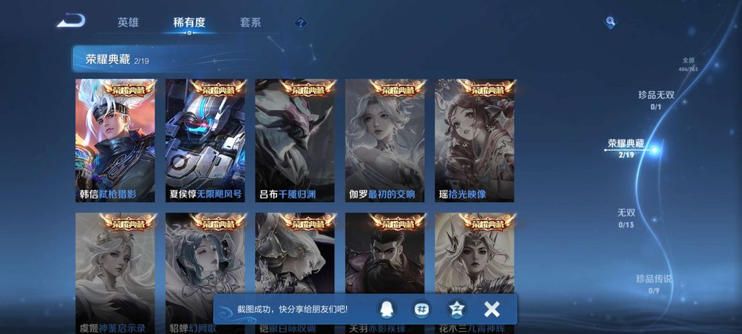 401皮肤2荣耀典藏19个传说可排位段位20星