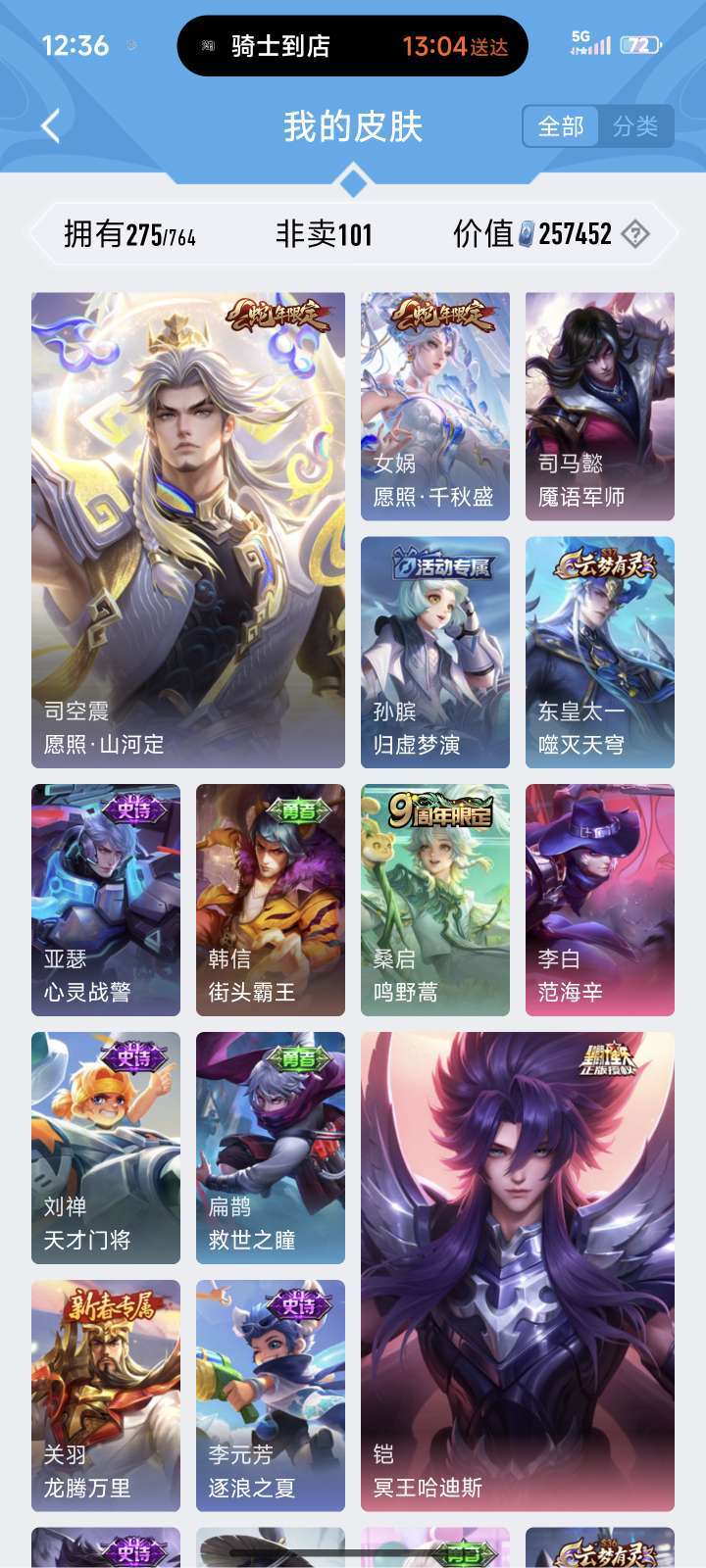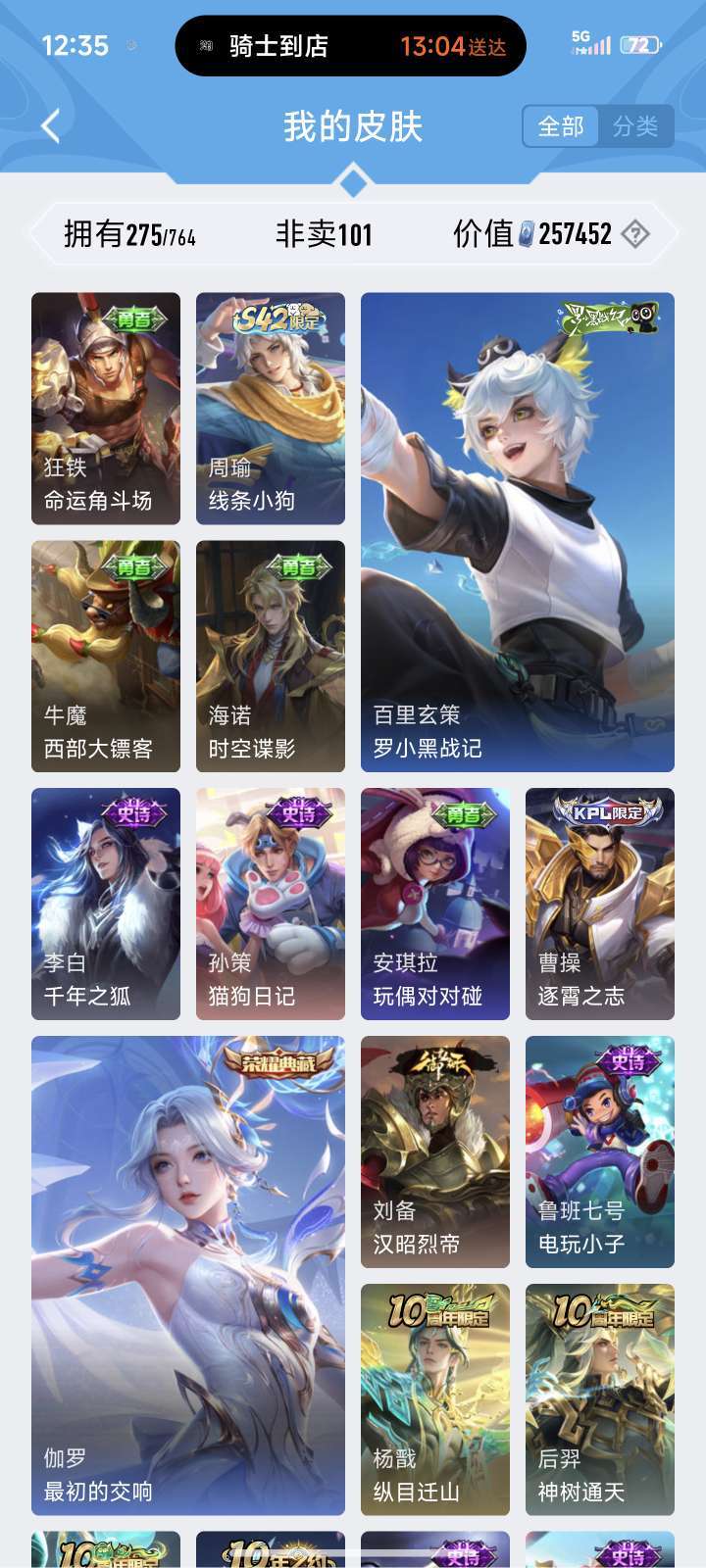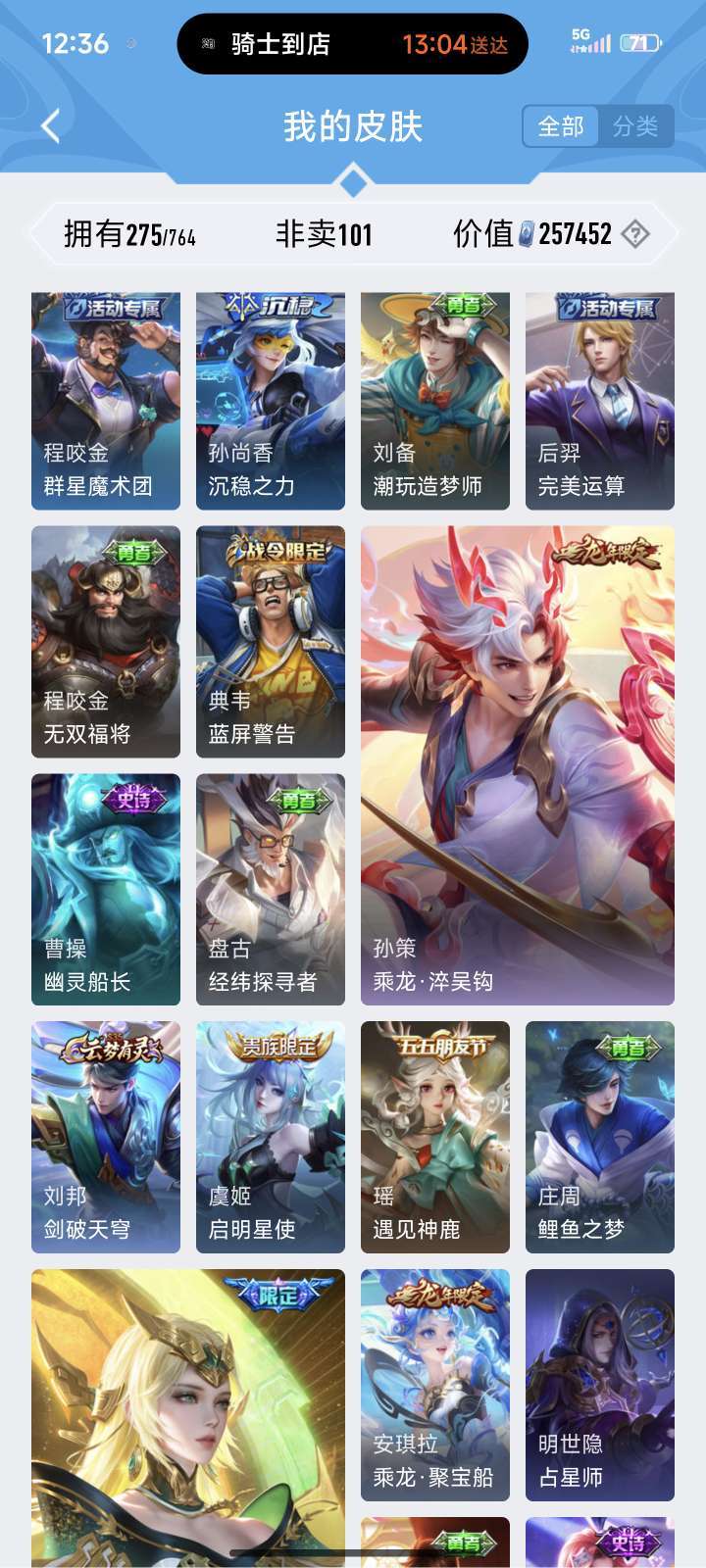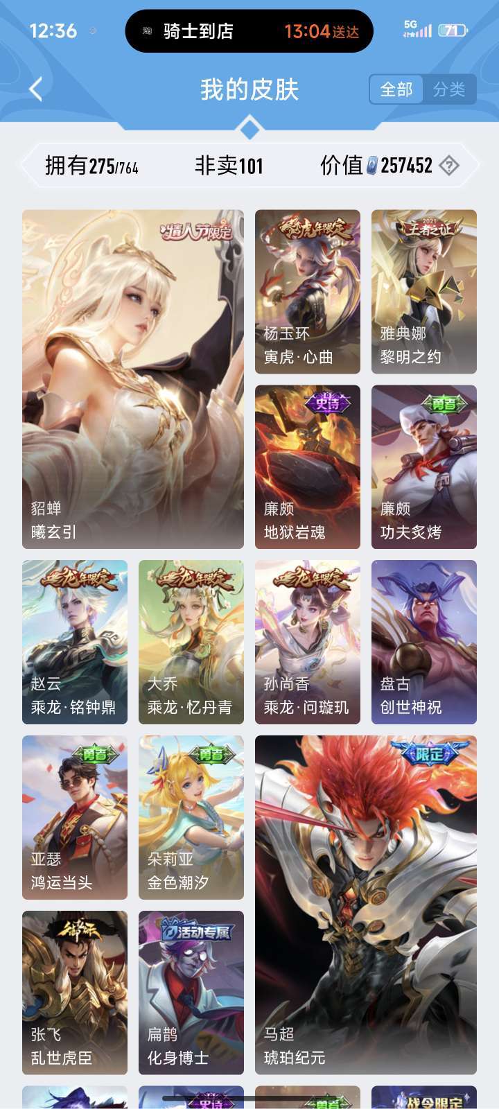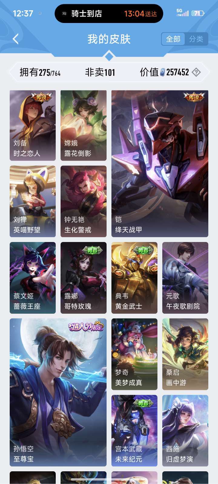 无双花合斗、神罪♥全套龙年♥朵莉娅520限定♥至尊宝♥美猴王♥铠全皮♥貂蝉、狄仁杰星传说♥喜欢可收藏