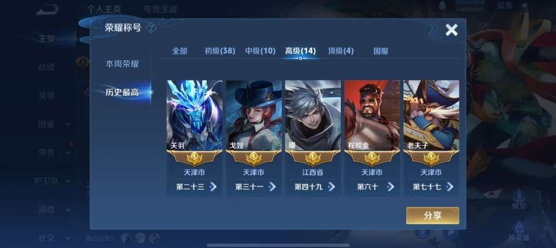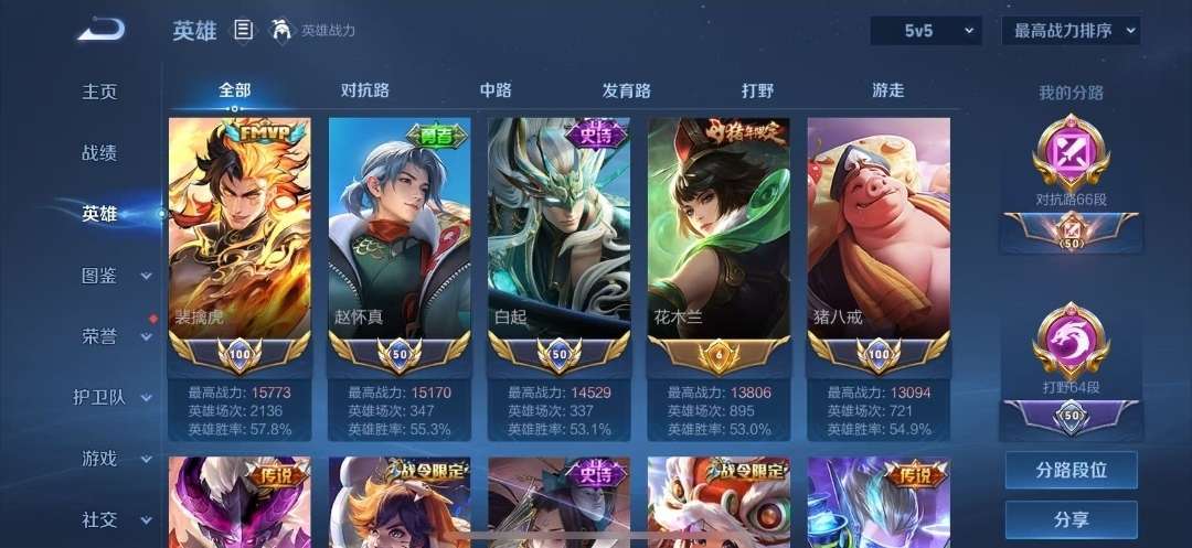 1.6w小国梅西 小国猪八戒 小国赵怀真 小国白起 多金标 白虎志 神威 70段打野
