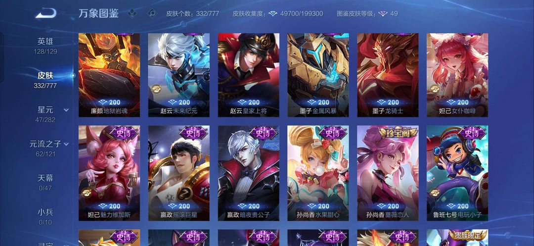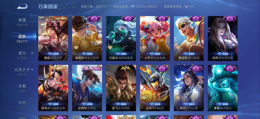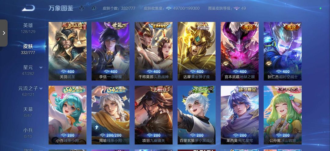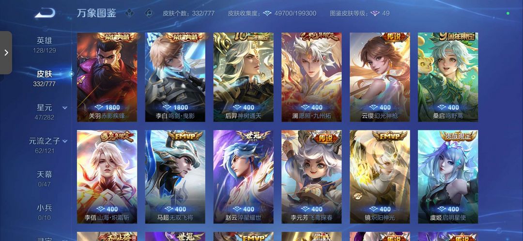 俩个荣耀典藏李白和关羽,14个传说皮肤极品皮肤
