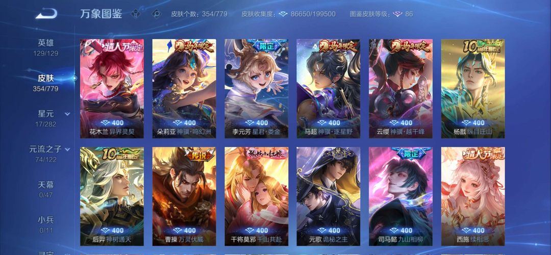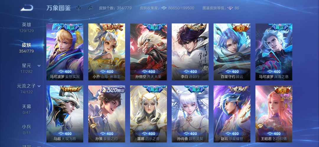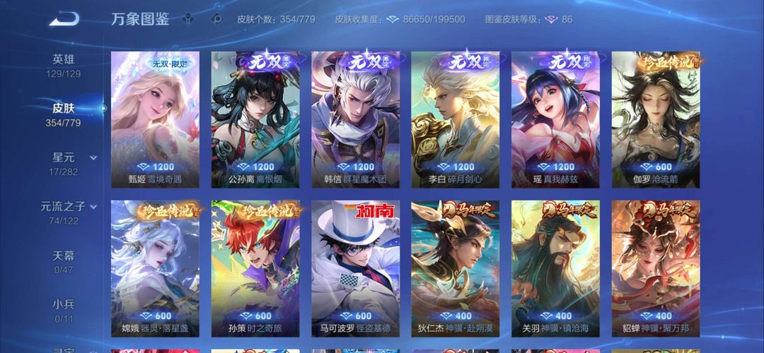 七典藏,十无双,四珍品,五十五传说,一百一十八史诗。