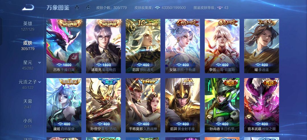 至尊宝,大圣娶亲,逐梦之影,辉光之辰,诸葛典藏皮,吕布最新典藏,地狱之眼,女娲传说皮肤,猴子零号