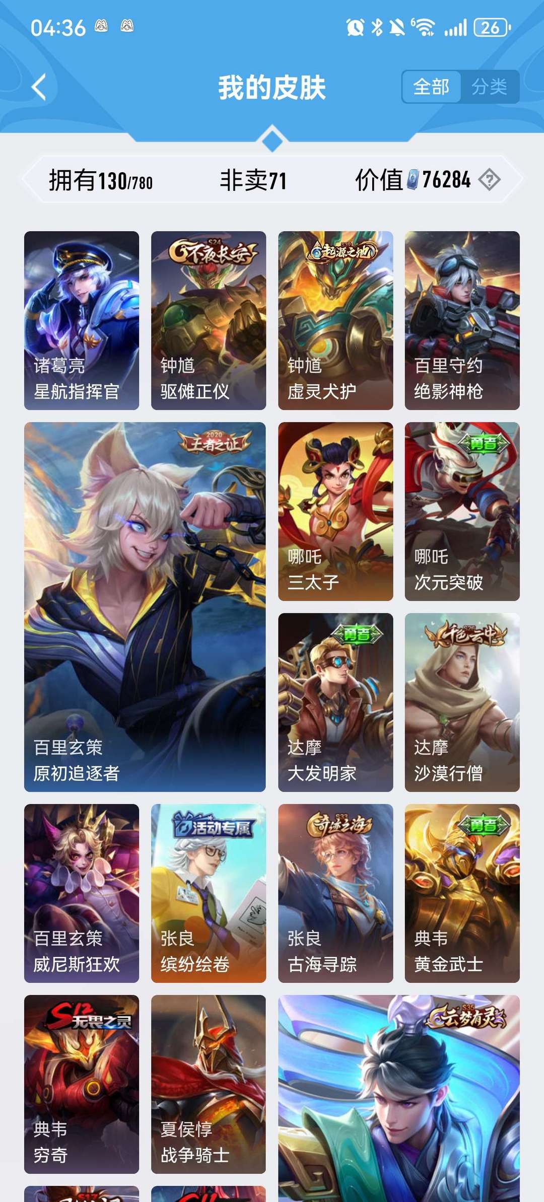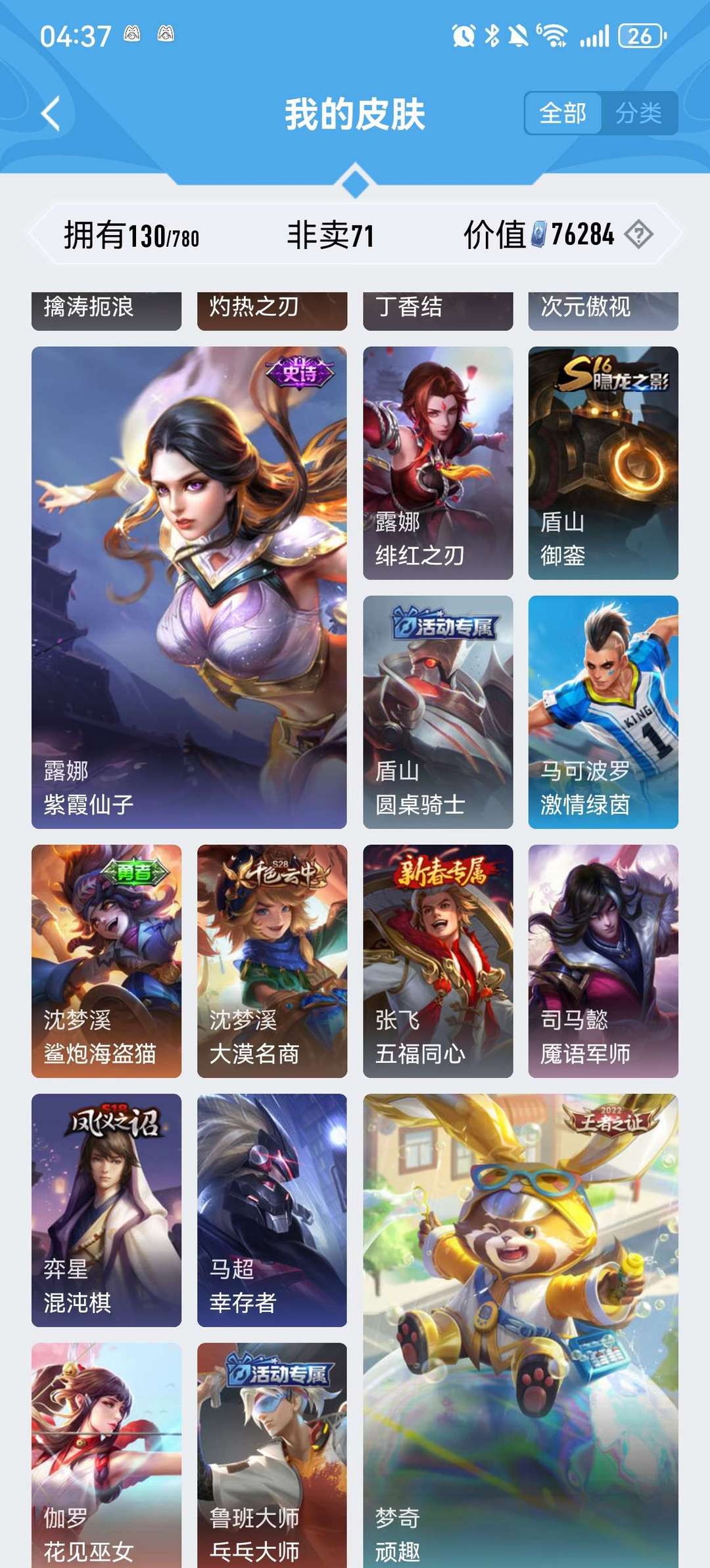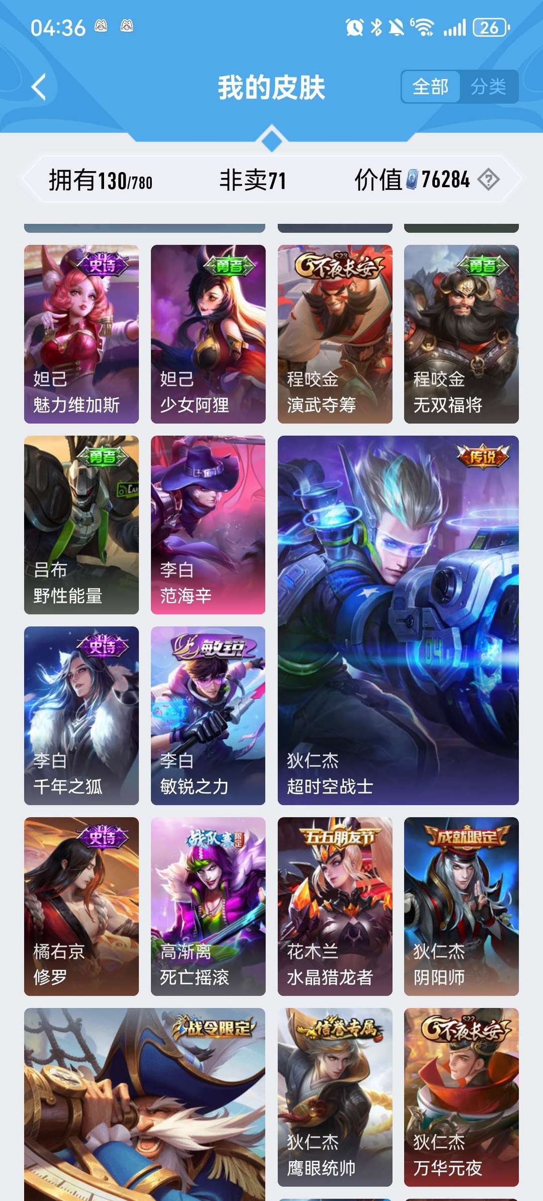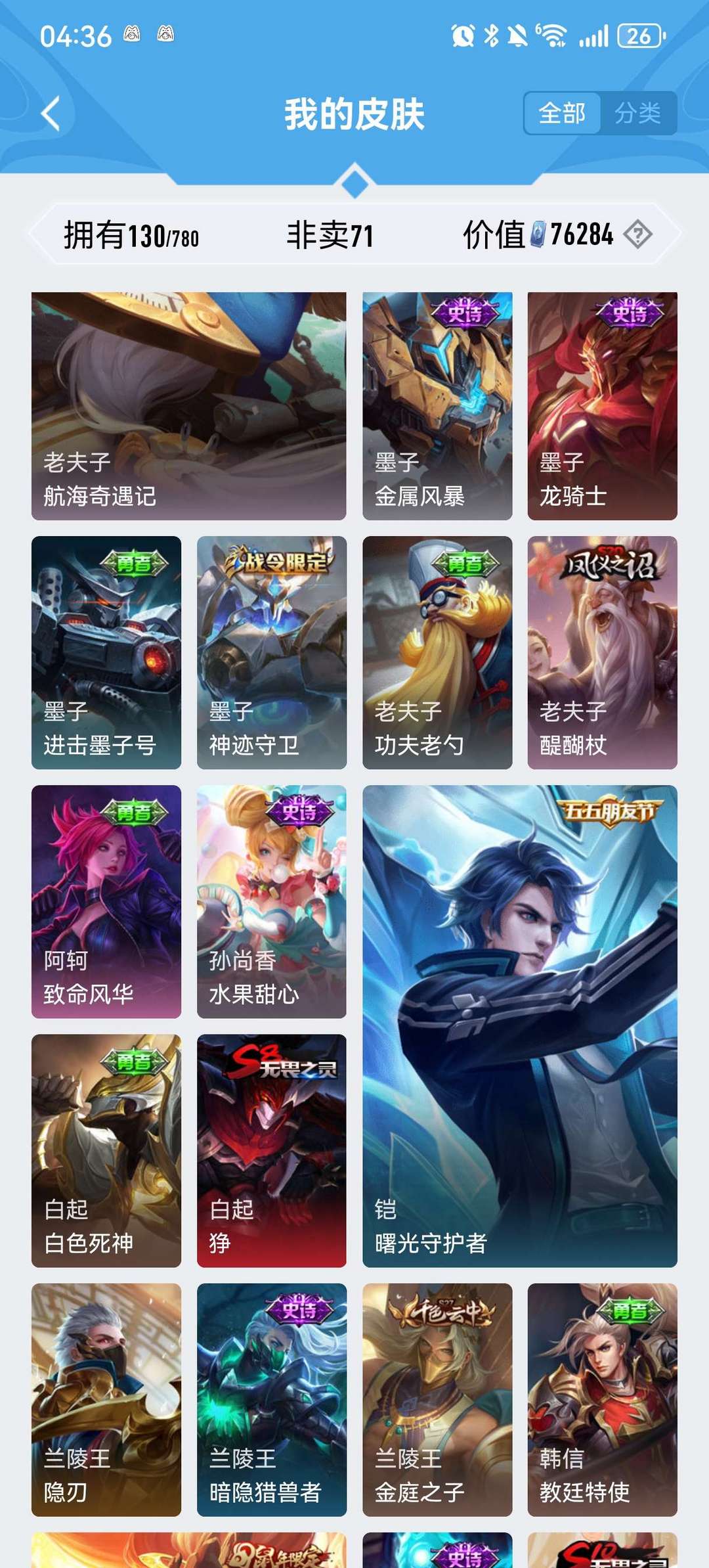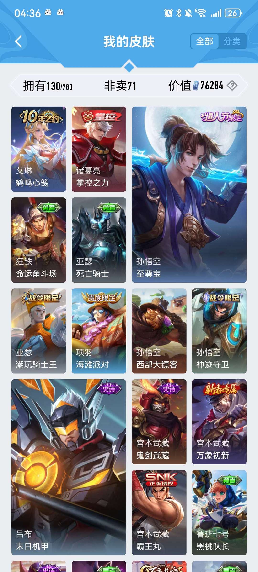 100多皮肤,全英雄,星耀段位,铭文全满
