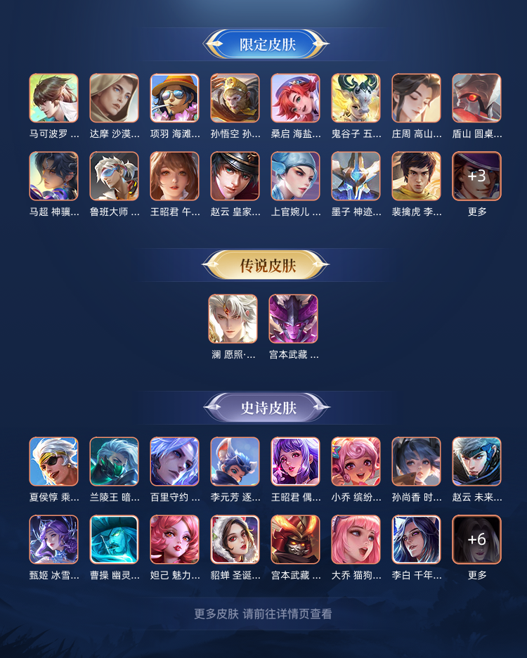 马超无双飞将+马年限定,澜蛇年限定,曜无双飞将,宫本星传说,马可兔年限定,众多史诗。铭文基本全满。