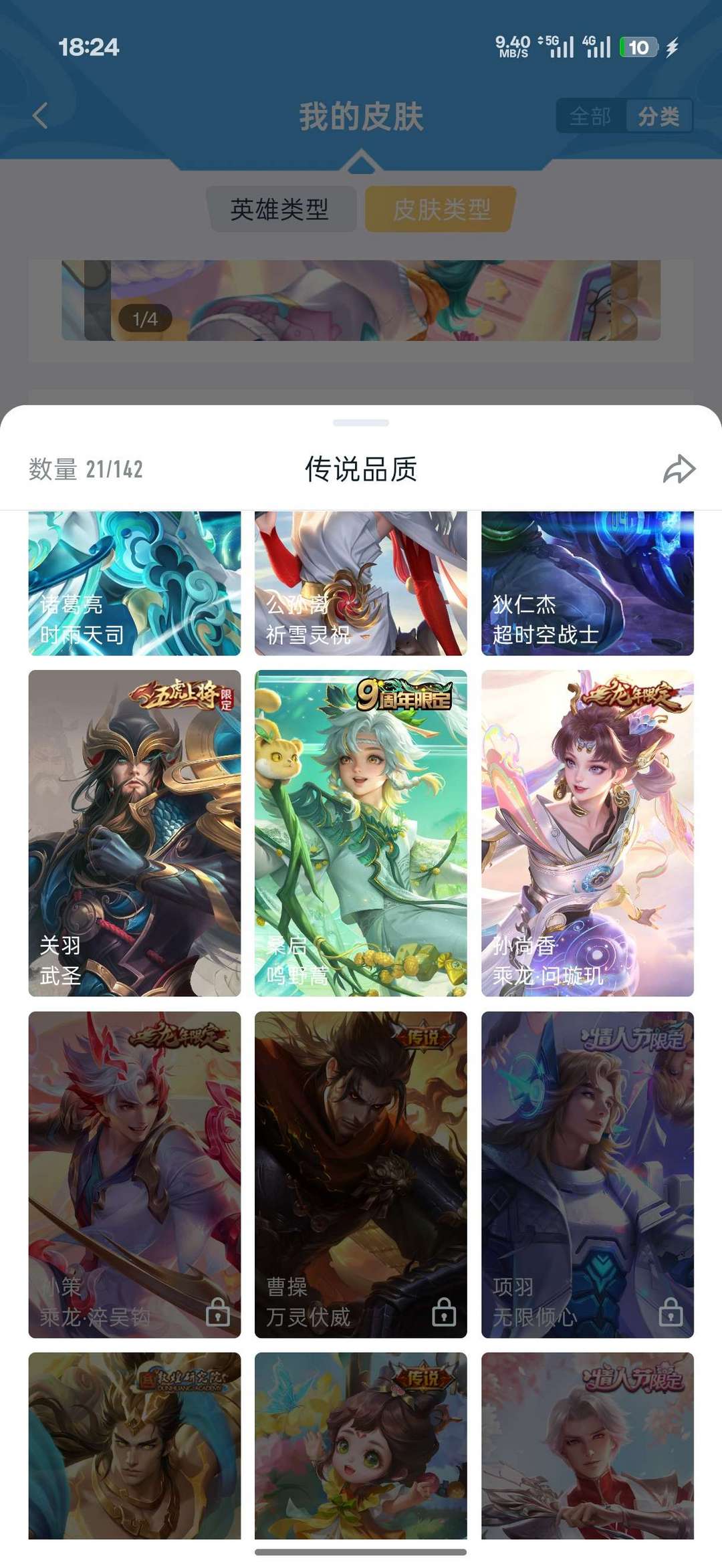 1典藏21传说106限定除武则天外全英雄全满级铭文