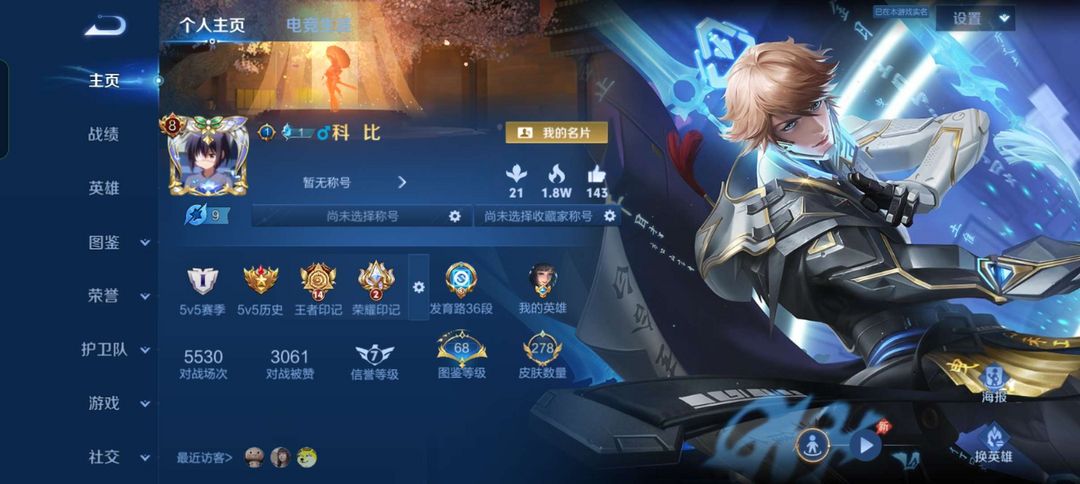 v8,李白诸葛荣耀,278皮肤,钻石可排位,极品id科比