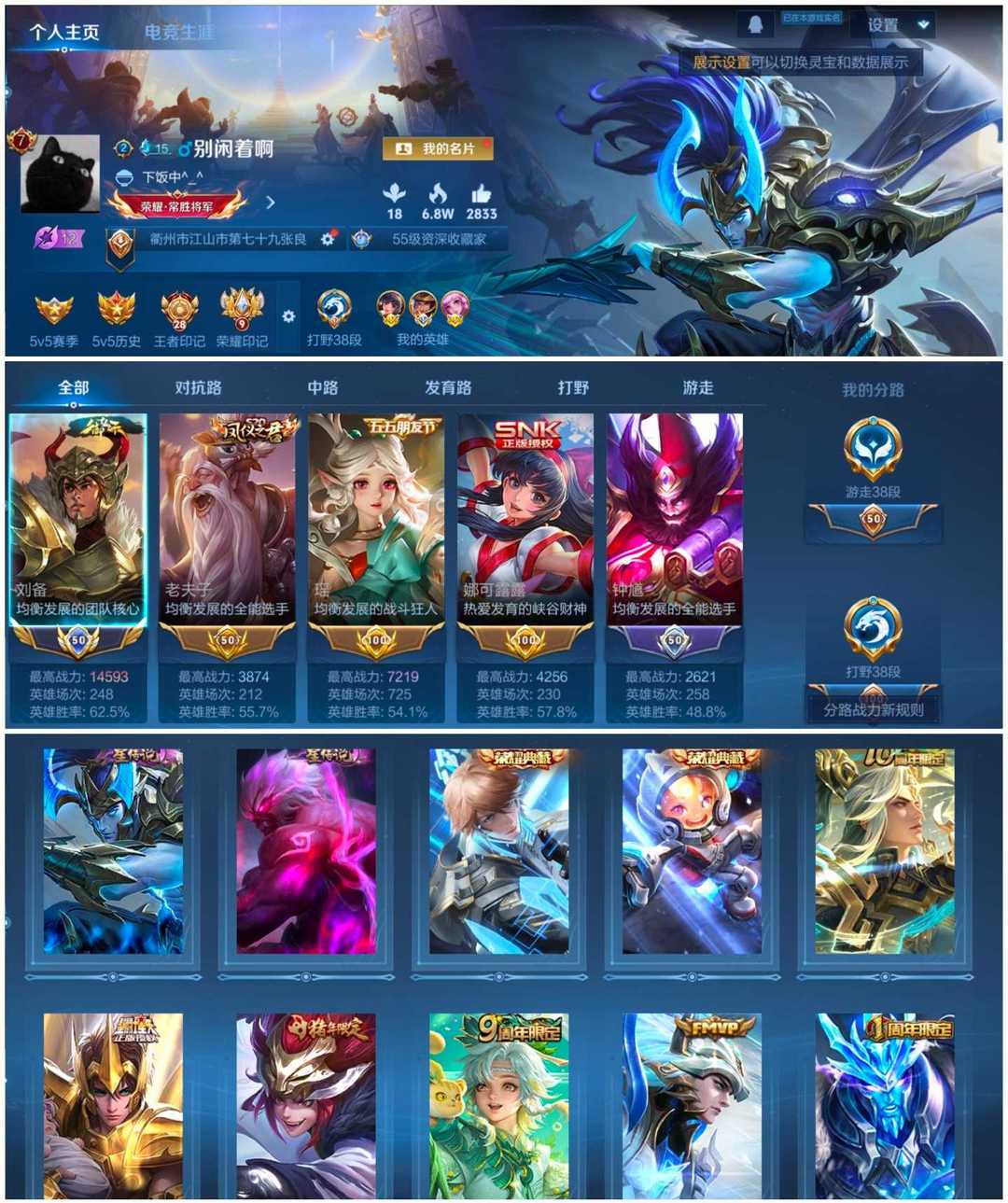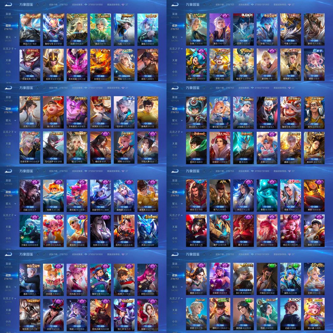 王者段【国服刘备框】【V8 300P】四典藏【五金标瑶鹿娜露】【曳影星空金貂幽冥白虎无双冰封】
