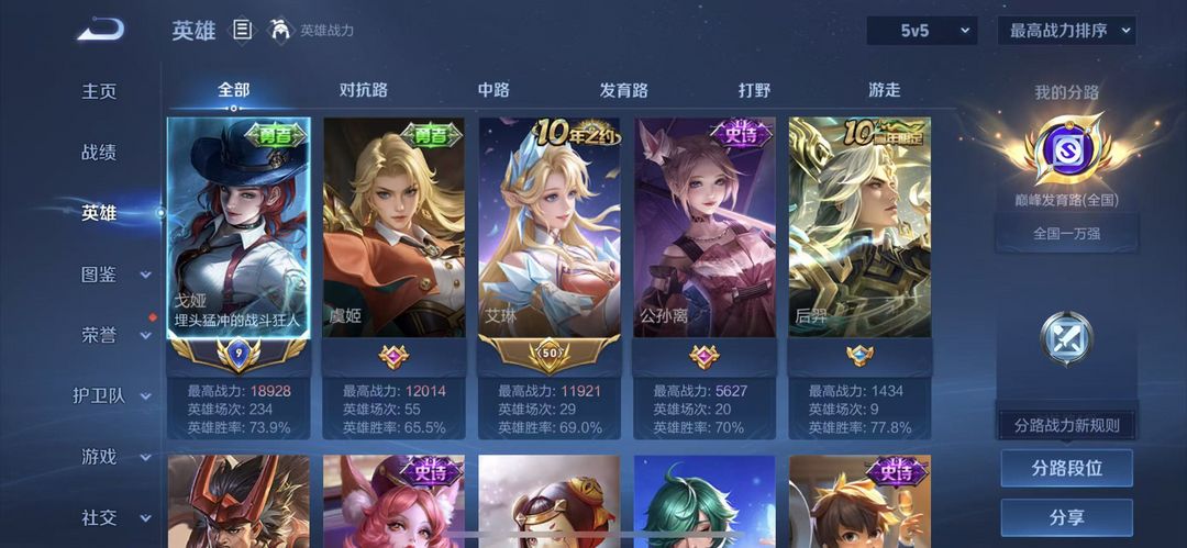 信誉分不足90 巅峰万强发育框⭐2月正式服在榜省标戈雅艾琳虞姬⭐1.9w战力数字标⭐超多省级限定皮