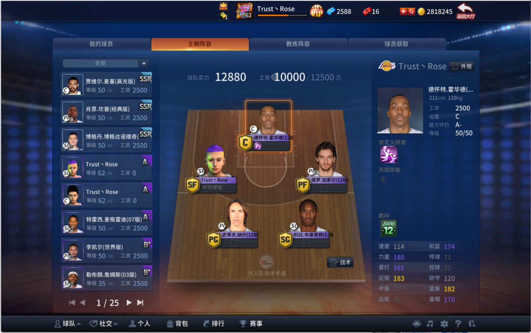 装备描述:【温罄提示】 1.第一次登录不上去,别撤单,选择号主协助上号; 2.请租客不要动账号里的任何物品!号内部分球员未突破,请勿自行升级突破,建议勿租!! 3.如各位租客使用第三方软件开挂、对账号里的球员和技能分解,将联合租号玩平台和网警对租客进行一查到底,租号玩平台随时监测。最后祝各位老板玩的开心!!!