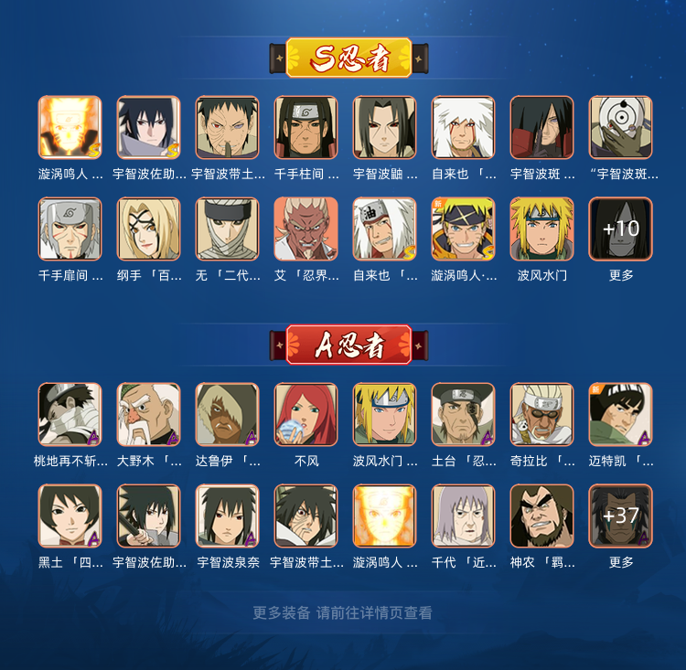 装备描述:32S42A忍战雷影忍战带土大蛇丸秽土柱间天道佩恩百豪纲手二代土影无秽土转生斑秽土转生千手扉间年轻三代仙鸣金鸣半蛇兜小南鹰佐止水千代近松十人卫角都地怨虞忍界大战我爱罗须佐能乎佐助忍界大战奇拉比博人传黑土青年水门忍战宁次忍战小李青年长门