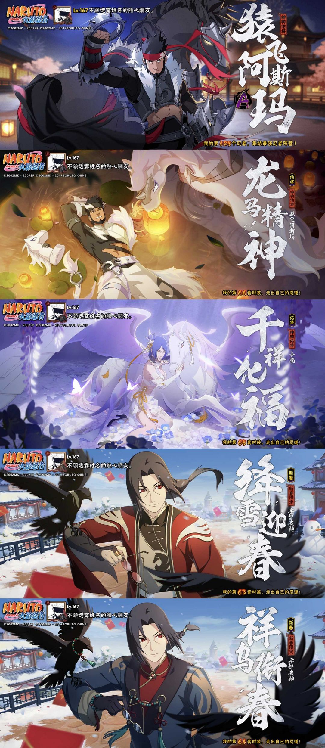 神驹新春系列♦忍法贴神驹斑♦六道带土♦侠隐佐助♦金身水门♦侠隐系列♦V15顶配♦满皮肤魅力55♦全通