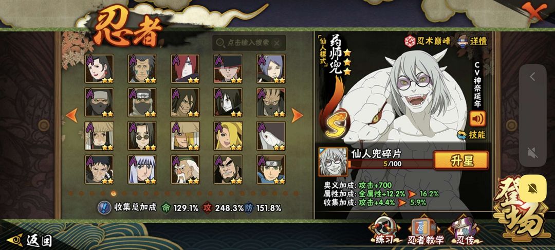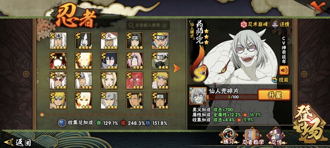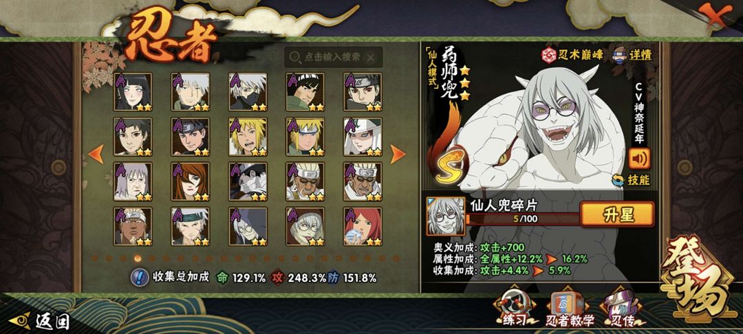 装备描述:近期高招忍法帖全有,(漂泊)带土 ✨佩恩(超)(漂泊)✨ 扉间(秽土)(漂泊) ✨九喇嘛鸣人✨ 创立 班(解)(秽土)✨ 仙人兜 (武侠)兜✨ 暴怒带土(忍战)✨秽土半藏 等多位稀有s✨a强力忍者