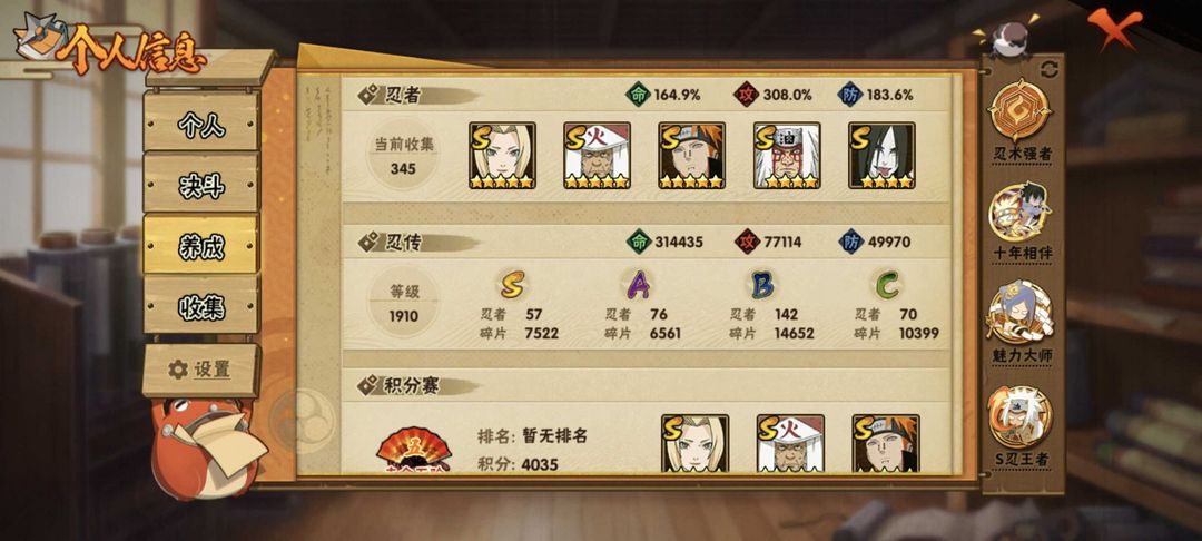 限制: 租号3次及以上 |装备描述:新S六道带土整卡❤57S❤76A❤V15土豪❤巅峰三代风影❤忍战带土❤忍战大野木❤天道超