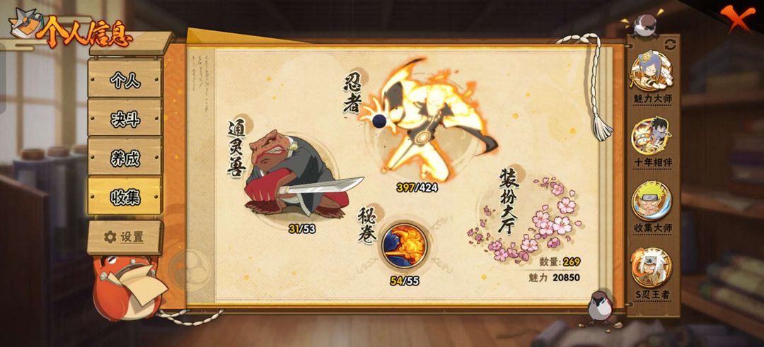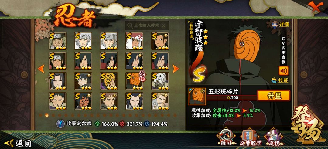 装备描述:53S 91A 397忍者 宇智波止水「新春限定」/桃地再不斩「漂泊武士」/蝎 「绯流琥」/佩恩·六道 「漂泊浪客」/波风水门「新春限定」/神秘面具男 「红夜之刃」/宇智波斑 「秽土转生·解」/波风水门「秽土转生」/千手柱间 「木叶创立」/宇智波止水 「须佐能乎」/漩涡鸣人 「九喇嘛连结」/宇智波斑「白面具」/艾 「忍界大战」/宇智波带土「忍界大战」/三代目风影 「秽土转生」/宇智波佐助 「永恒万花筒」/大筒木桃式/佩恩·天道「超」/旗木卡卡西 「须佐能乎」