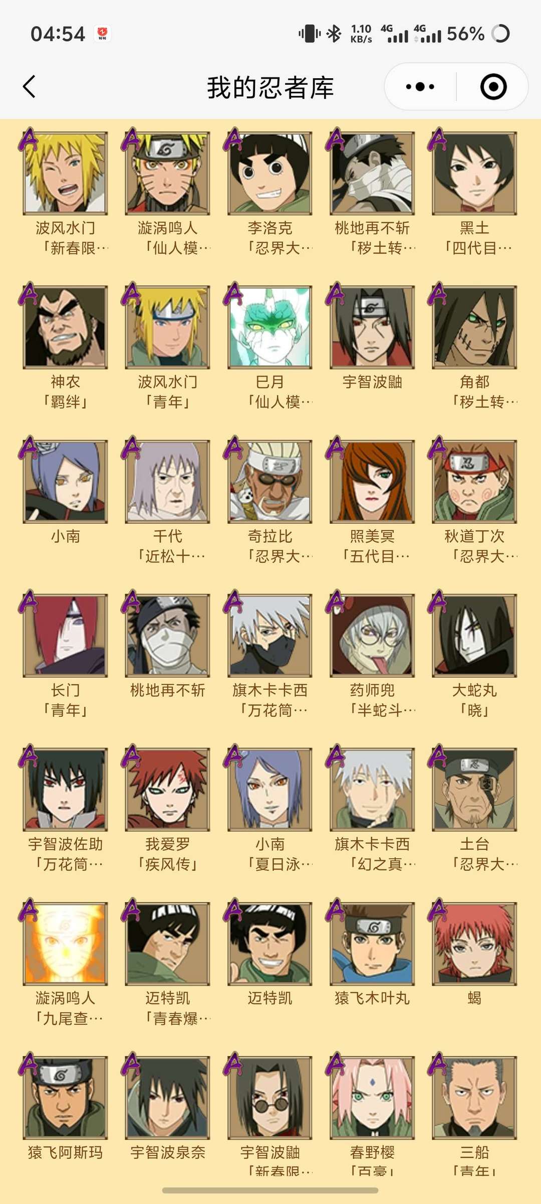装备描述:舍人,无,桃式,须佐止水,仙人兜,秽土长门,秽土鼬,死门凯,须佐卡卡西,百豪纲手,破面带土,忍战樱,传说自,机器鸣人,六尾鸣人