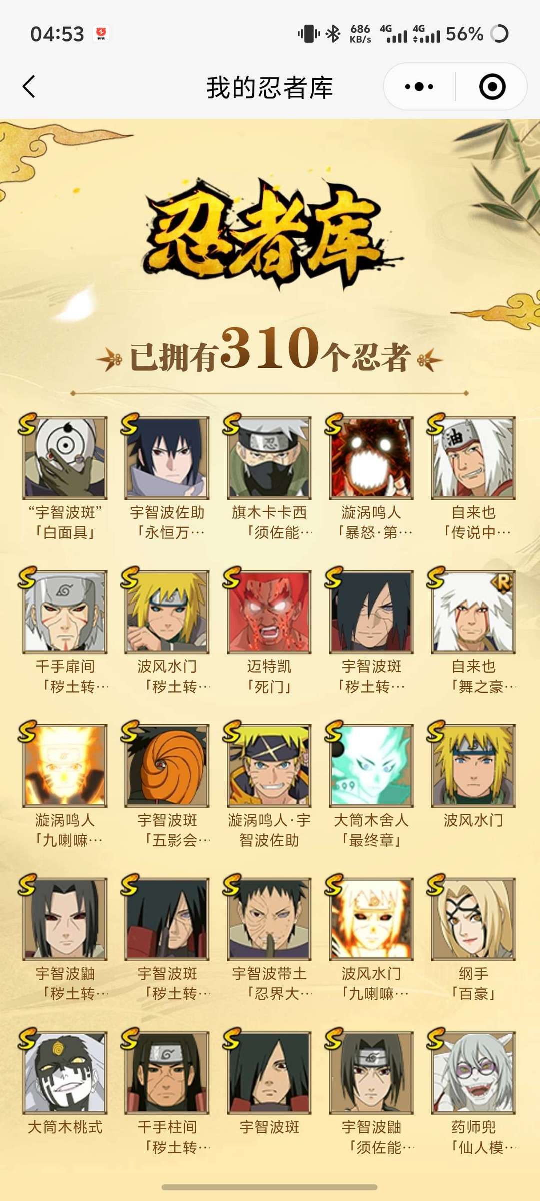 38S 58A 310忍 秽土一二三四代,独臂雷,old雷,解活死班,九尾鸣,永恒佐,白面