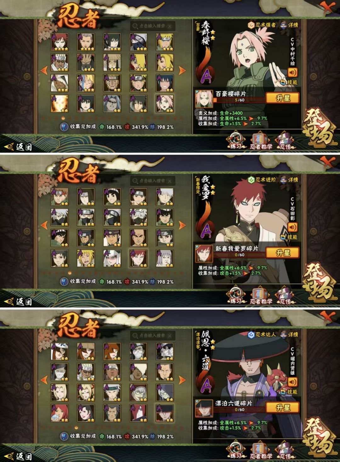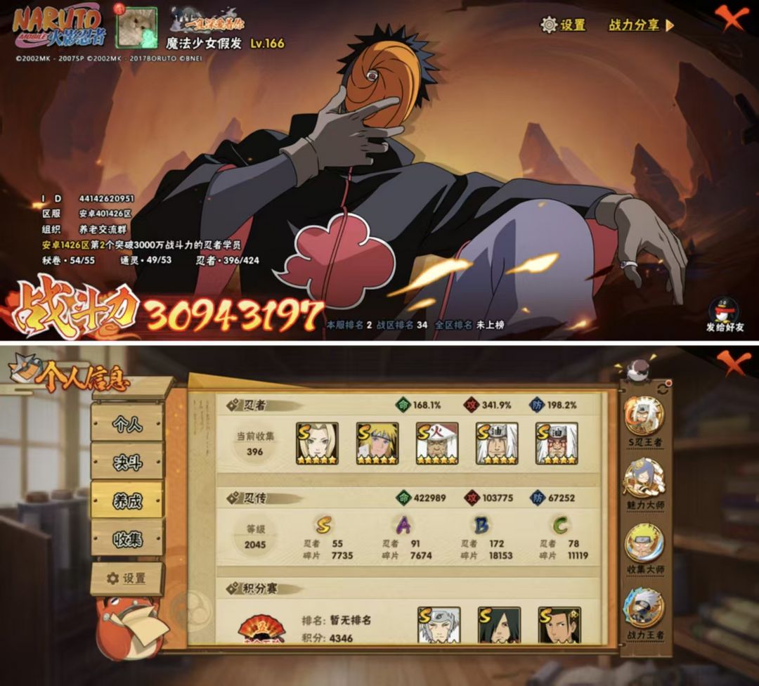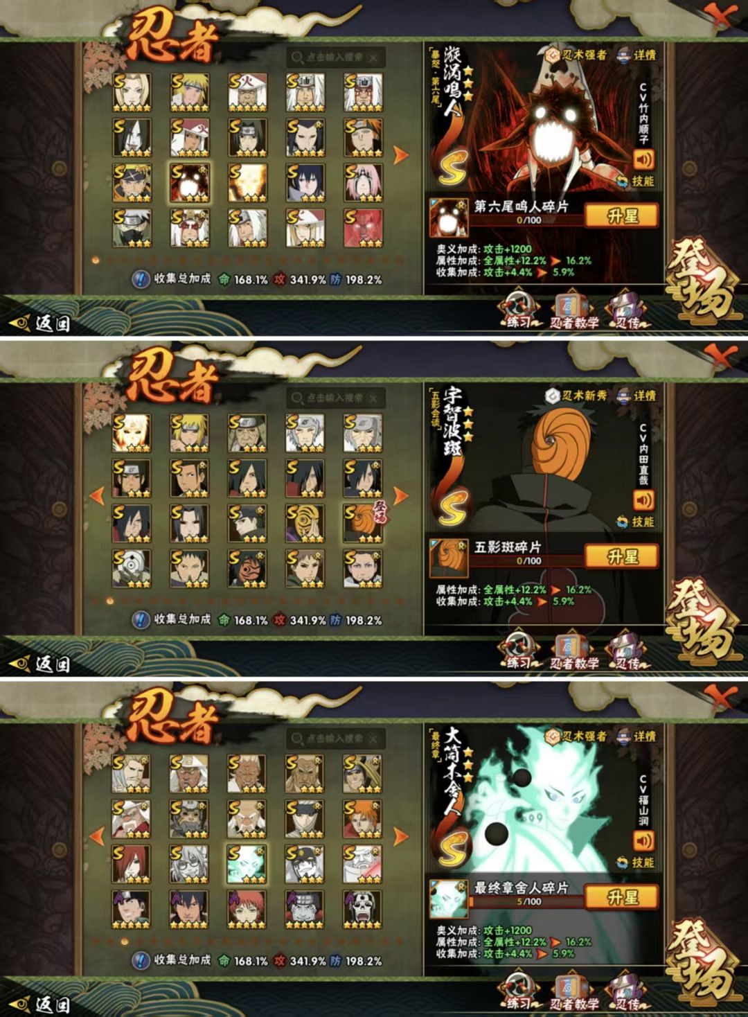 ✨全忍者55S✨3000w战力✨五影会谈斑✨黑绝✨漂泊带土✨暴怒六尾鸣人✨全通灵全秘卷✨传说自来也✨
