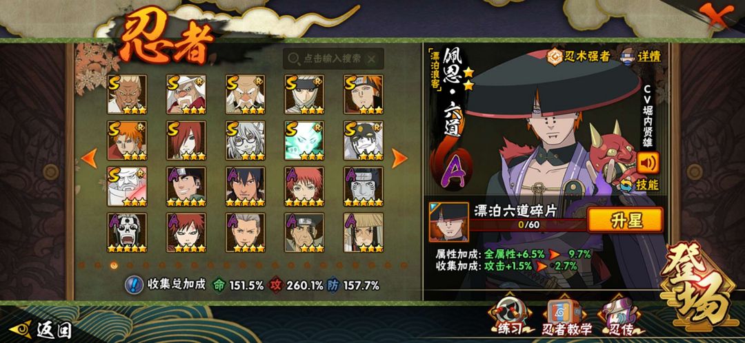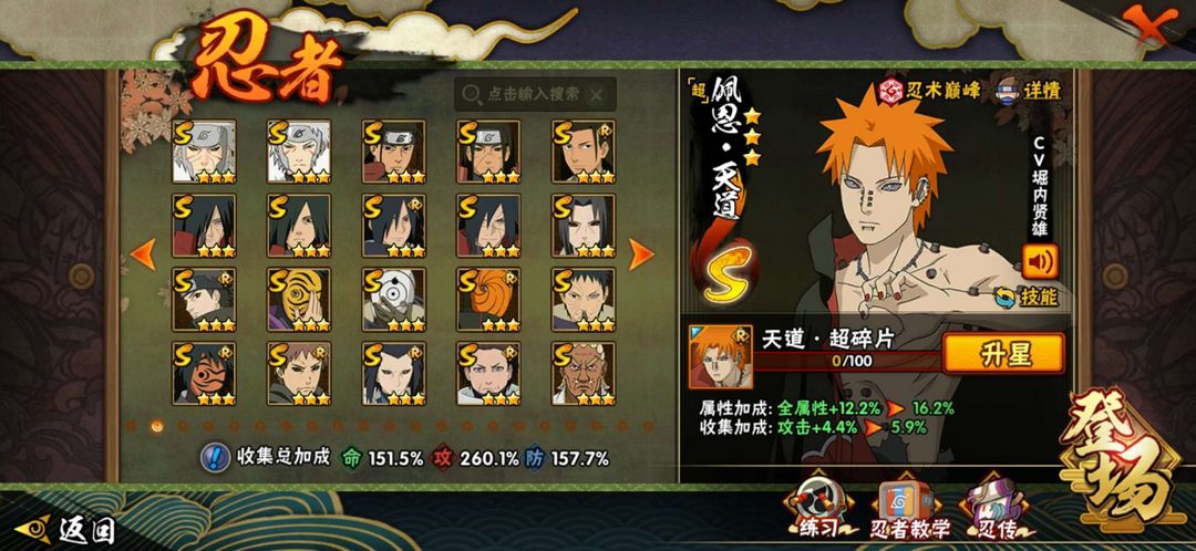 51S★60A★2470W战力 天道超/漂泊佩恩/须佐止水/六尾鸣人/舍人/机械鸣人/忍法帖