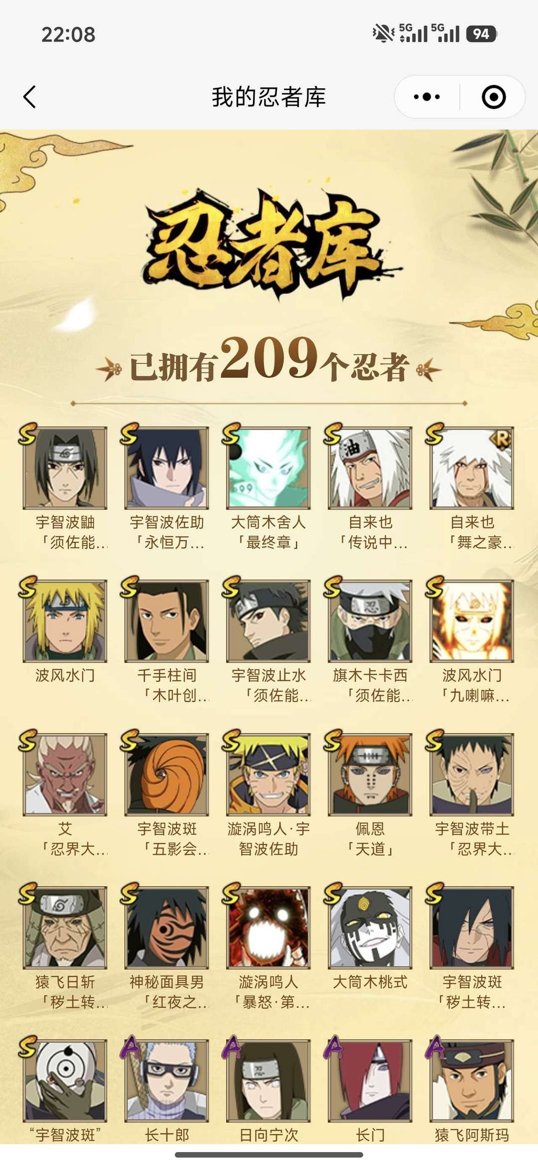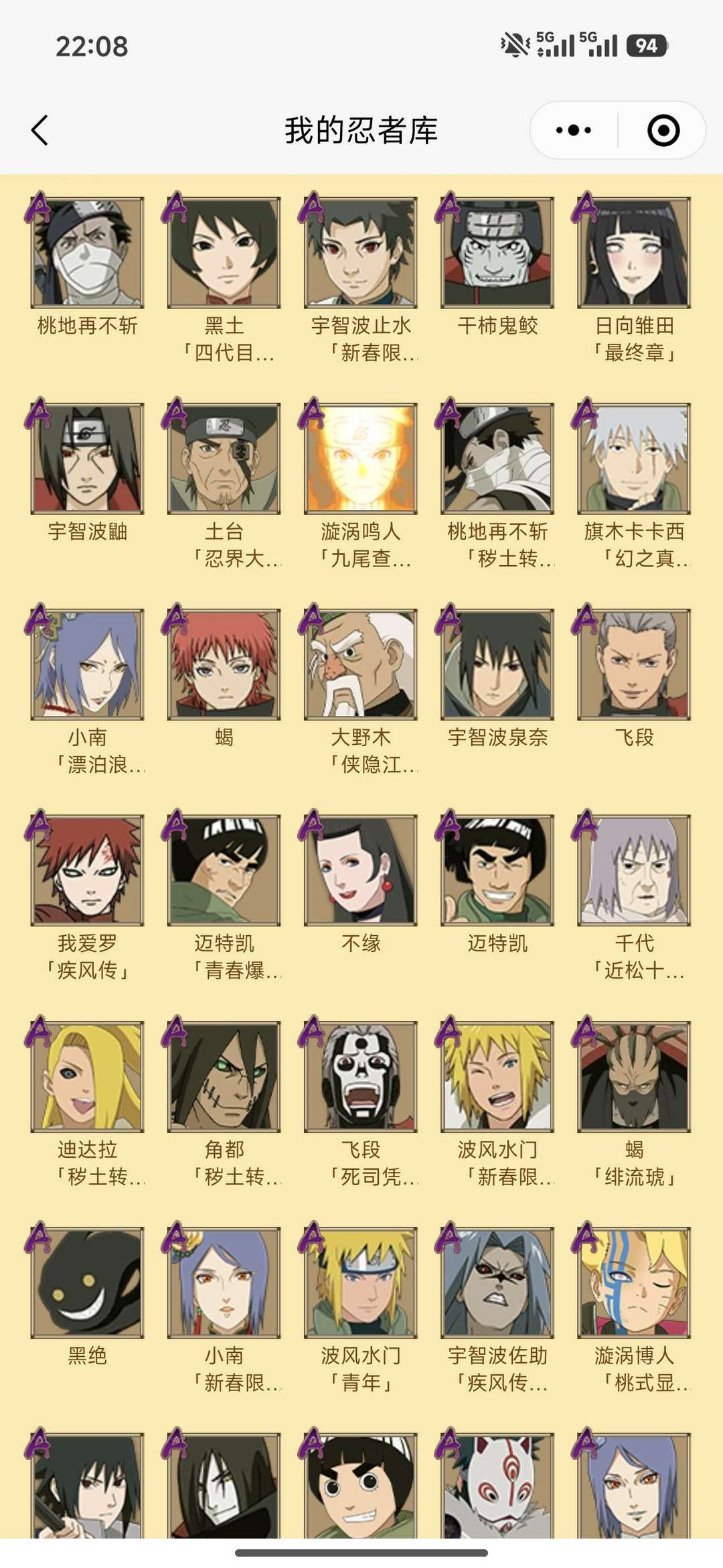 超多氪金忍者,漂泊系列全忍者只差白,新春系列忍者也很多,新手游玩的不二之选