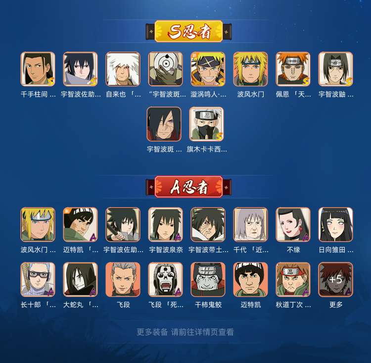 限制: 租号10次及以上 |装备描述:双神威卡卡西,白面具,永恒佐助,解斑,暴怒小孩都有,s忍a忍多便宜租