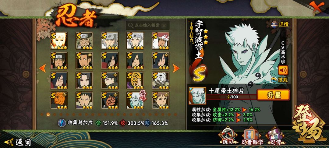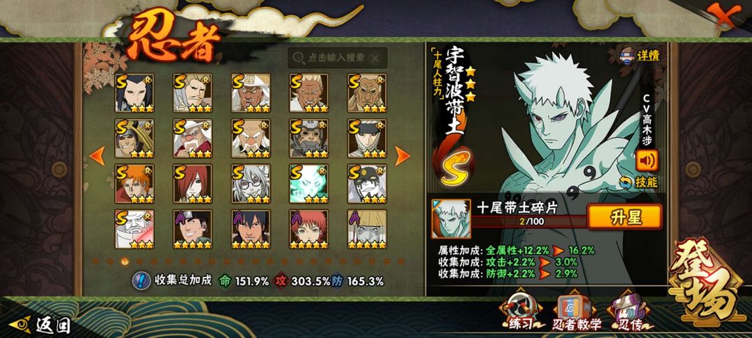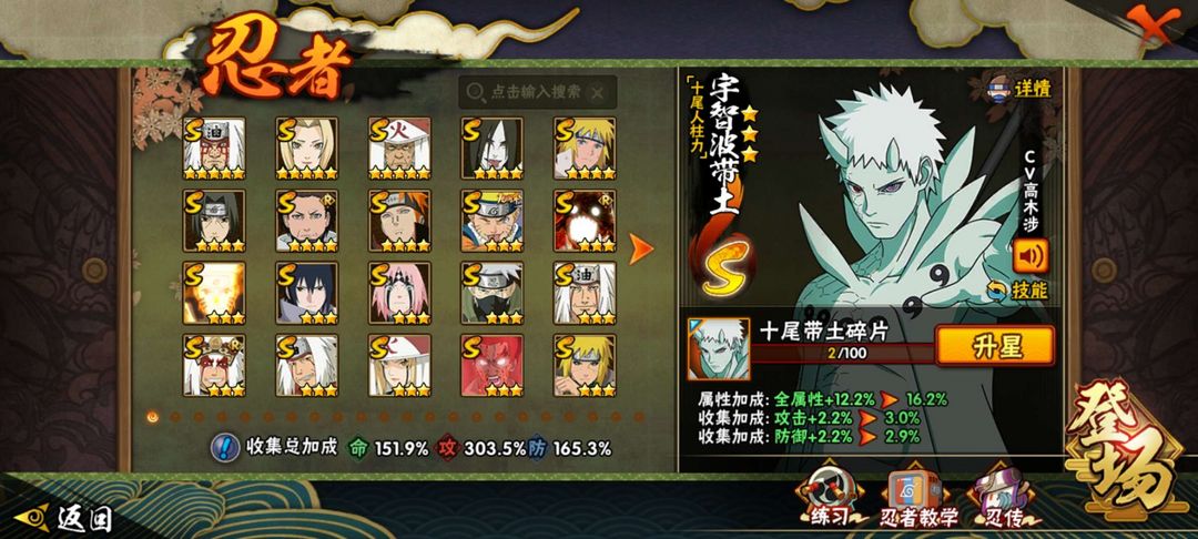 火影忍者手游账号,2750w战力,目前s忍除了神驹斑全收集,高招A忍全收集,若干点券忍者