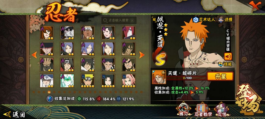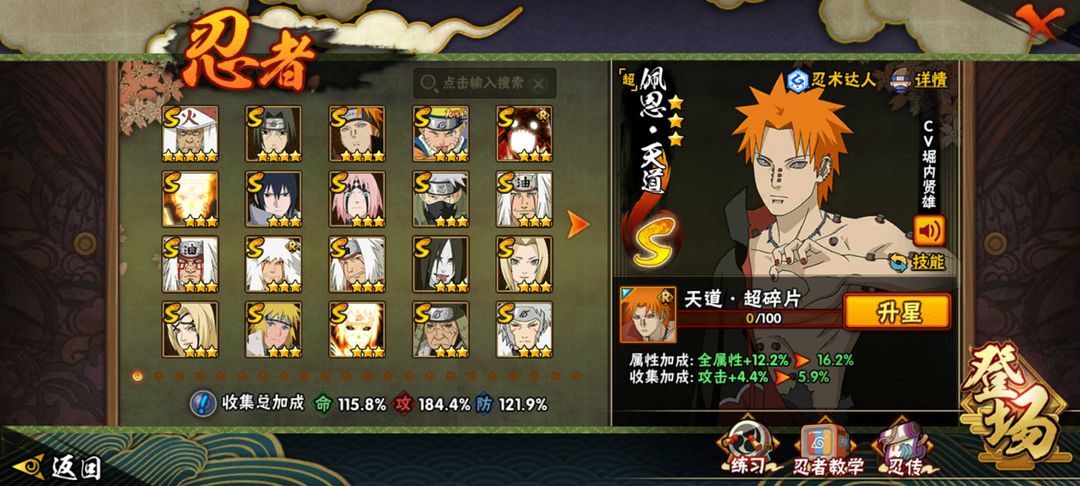 装备描述:37s 40a 有✨五影带土✨雷影✨漂泊小南✨漂泊佩恩✨暴怒带土✨新春小南✨解斑 创立柱间✨初代✨天道超✨