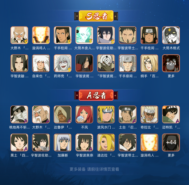 装备描述:自来也 照美冥 大蛇丸 雷影艾,你想要的old全都有,old忍者玩到爽