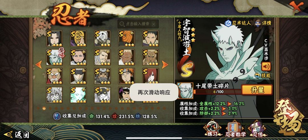 装备描述:多个高招忍,十尾带土,熊猫变色龙都有霸体十级,战力2000w
