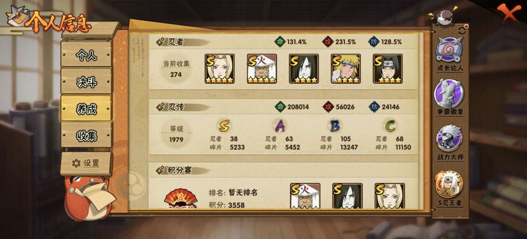 38s63a274个忍者高战力很多熊猫变色龙等氪金通灵