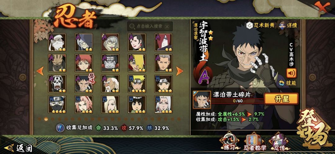 装备描述:漂泊带土,照美冥,佐助,蛇兜,再不斩,须佐卡卡西