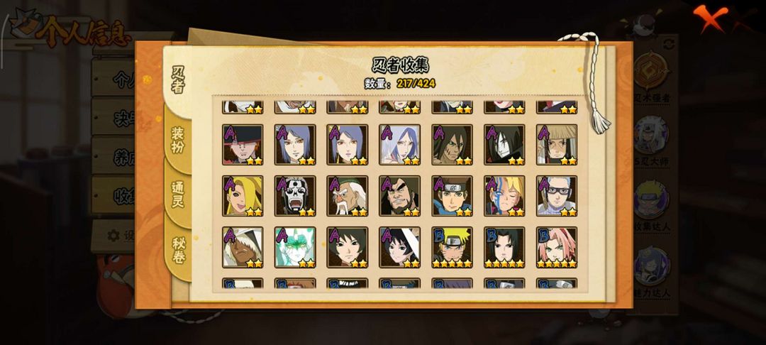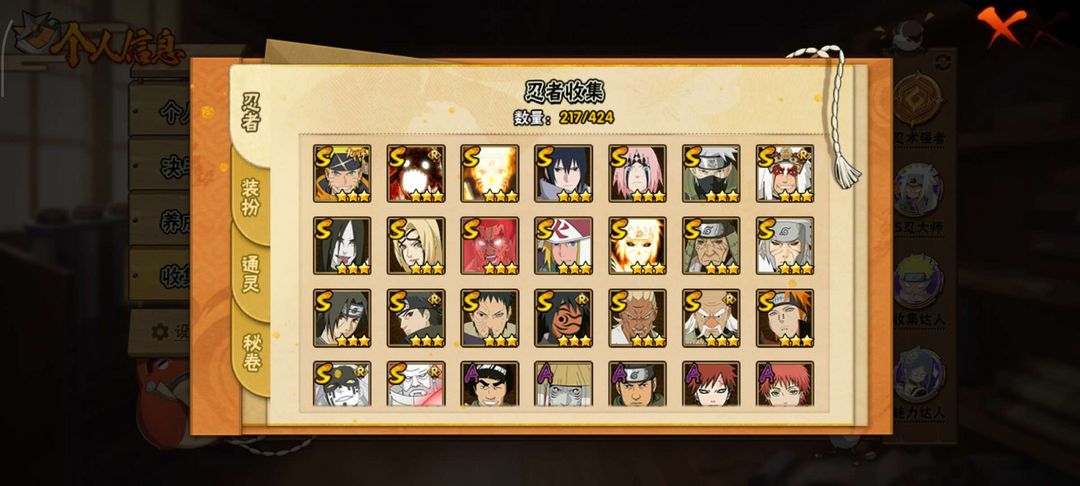 装备描述:热门s和a基本都有,198直购a多,有十几个,满级霸体,忍法帖密卷时空间后基本都有,98通有熊猫变色龙和螃蟹