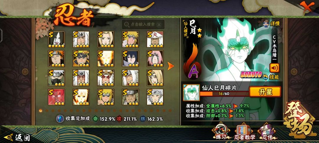 限制: 撤单率<20%才可租用此帐号装备描述:36s-55a✨忍战带土,卡卡西,九尾鸣人 大野木 高招都有,秽土鼬 秽土水门✨黑土 ✨长门✨千手扉间✨二代,高性价比