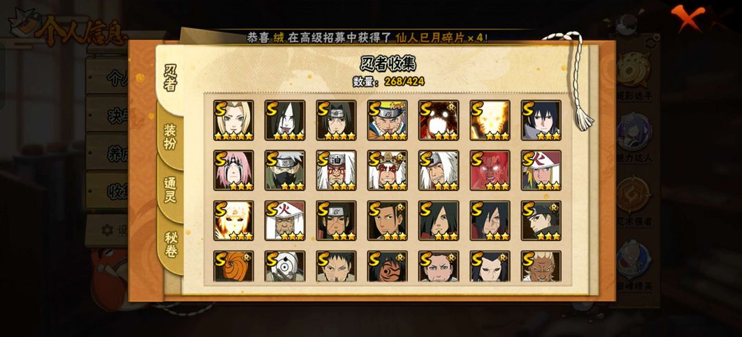 34S,41A,268忍,46通灵氪金通灵基本全的,高战力,国标忍者三个